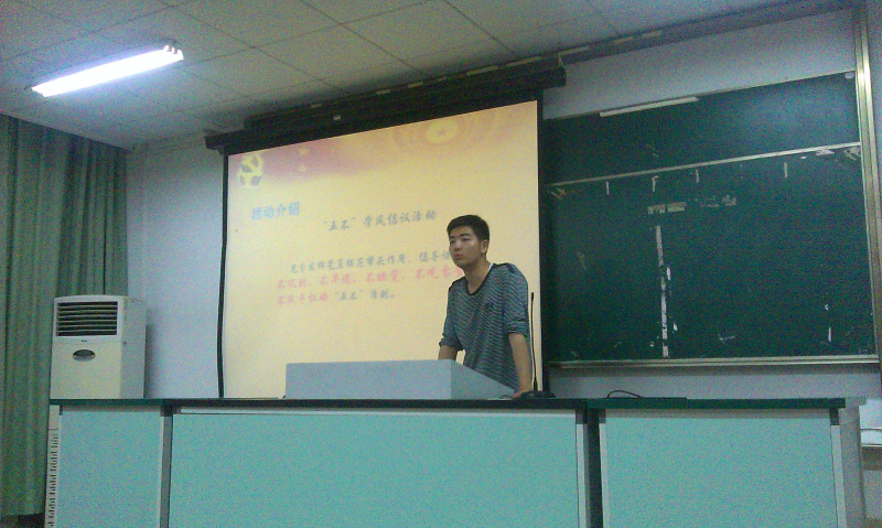最后,孙扬同志对发展对象提出几点要求,要有积极的模范带头作用,联系同学,正确处理个人利益与集体利益的关系,最重要的是端正入党动机。并且提出党员先行倡学风——学风建设系列活动,极力提倡“五不”学风倡议活动、“诚信考试”承诺活动。并且希望本支部所有党员、入党积极分子、入党申请人能够做到“五不”准则,进而对全体群众产生影响,形成良好的学习风气,得到授课老师的认可。以一名优秀共产党员的标准严格要求自己,戒骄戒躁,为校园学风建设做出自己的一份努力, 为自己的大学生活写下浓墨重彩的一笔!