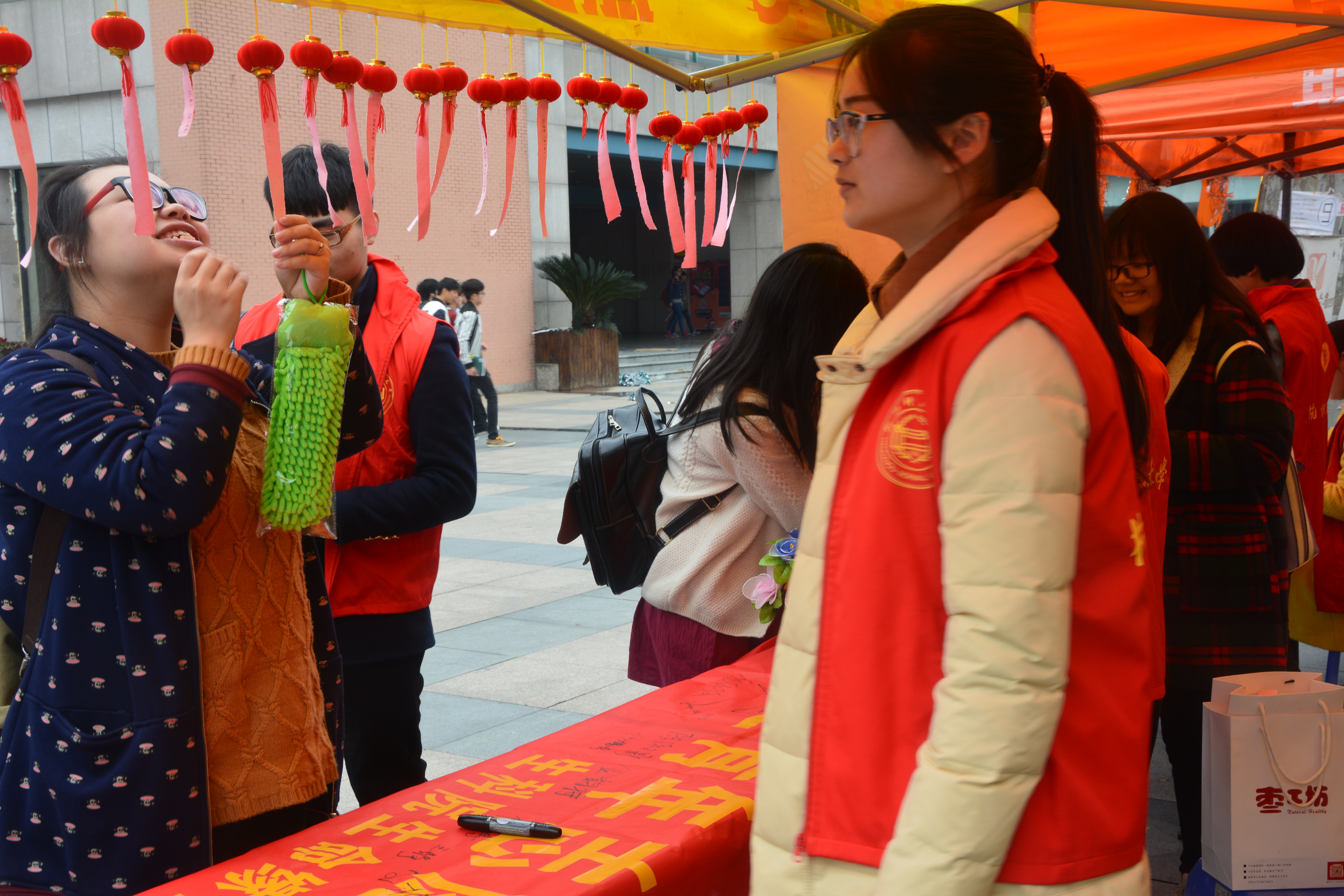 中午十一点半,工作人员们已早早布置完活动场地,鲜艳夺目的海报、小巧玲珑的灯笼、平整有序的签名幅都在这个不大的帐篷里展尽光彩。学生下课后,人流越来越多,停留驻足在活动帐篷周围的学生也越聚越多。纷纷好奇地询问这是什么活动,工作人员带着温暖的笑容耐心地解释。同学们听完都跃跃欲试,在挂有灯谜的小灯笼前开展了脑力竞争。阵阵欢声笑语飘散在这阴沉沉、湿漉漉的空气中,不少同学通过和同伴的合作都猜出了谜底,兴奋地在签名幅上签上自己的名字,同时也得到了精致的奖品丝袜花。还有些同学仍然绞尽脑汁地猜灯谜,一声叹息、一次欢呼都让同学们在快乐的氛围里面了解了学雷锋日的活动。有些同学甚至拉来了自己的小伙伴一起参加这次的学雷锋日活动,还打趣地说,在这上面签上了名字,我们就得在生活中多做好事啊。在这新学期的伊始,和暖的春风正在吹来,学习雷锋的正义之风也拂过同学们的脸庞。随着灯笼上悬挂的灯谜越来越少,本次活动也接近了尾声,太阳虽然仍没有探出头但在这帐篷的周围却萦绕着欢笑、温暖、明媚的空气。