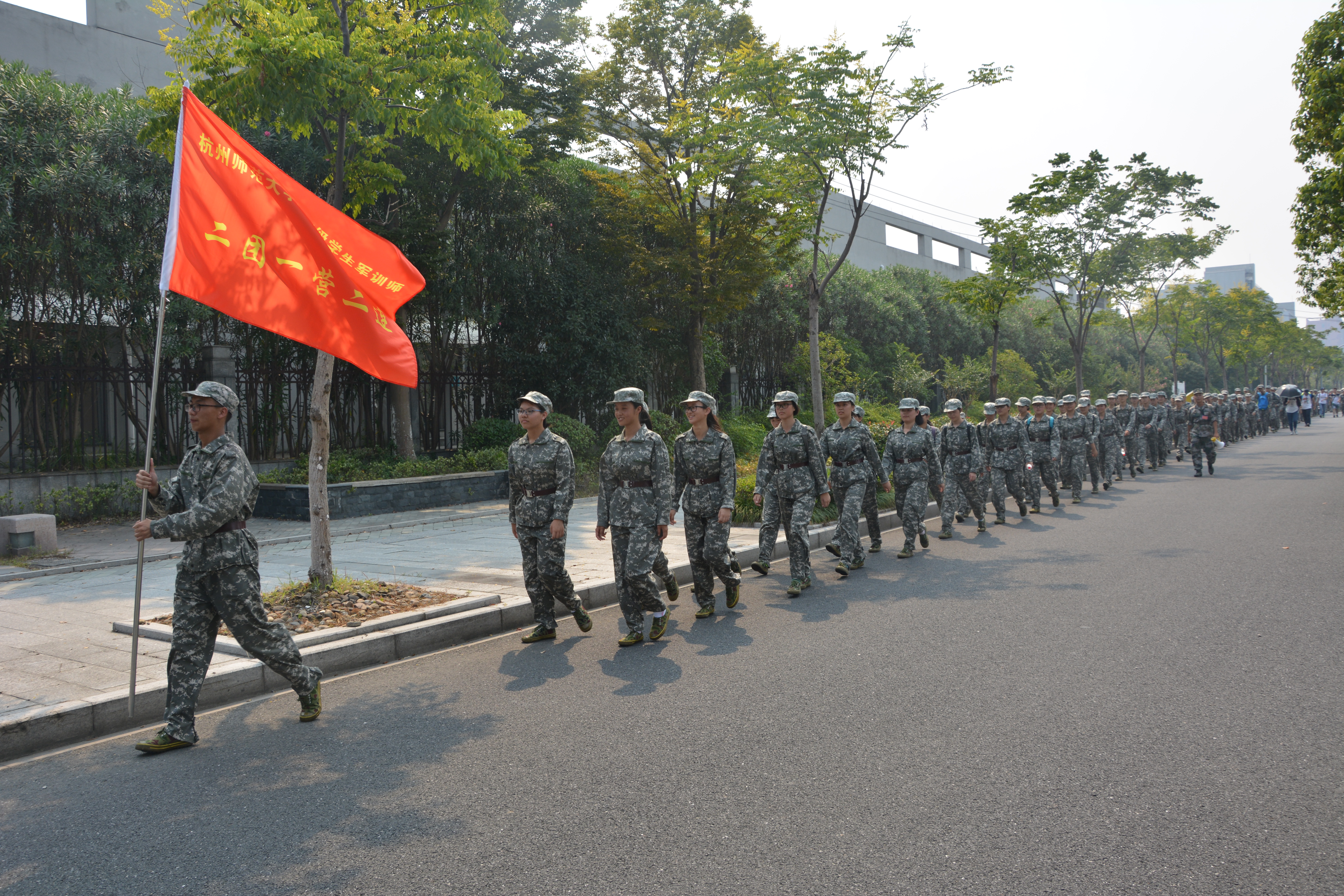 9月11日下午1点半,以锻炼强健体格,培养团结协作,磨练坚强意志为目的,无码影片 组织2015级新生参加了长约十公里的拉练项目。军训队伍似一条绿色长龙,不停不断地穿梭在钱塘江边。