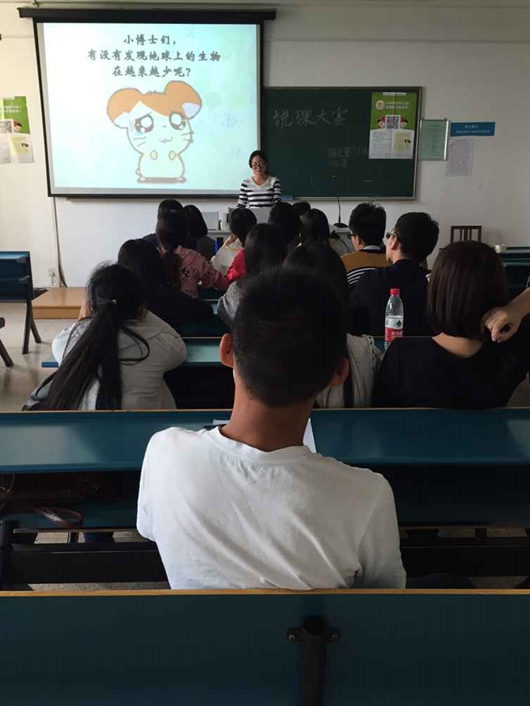 下午两点“说课大赛”准时开始,由主持人简单开场后,选手们依次上台演讲。参赛的选手们大都精心地准备了关于环保理念的讲课PPT,认真地在台上讲授环保知识,并在讲课过程中活泼生趣地与评委们互动,评委们也积极配合,化身为小学生积极回应在台上讲课的选手。比赛在热烈欢乐的气氛中进行,每位选手演讲完后,评委们都会给予热烈掌声表示对选手们的认可。最终比赛也在热烈的掌声中落下帷幕,此次大赛选拔出来的讲师将在日后走进小学课堂和小朋友们进行亲密的互动。