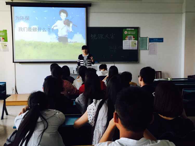 10月11日下午,A-307教室如火如荼地进行着由"绿之翼"环保协会环教部举办的“说课大赛”。大赛旨在选拔优秀的小教师们去小学进行环保知识的教学与环保理念的宣传。大赛邀请了社团中心主任沈靖钦、"绿之翼"环保协会会长李梦超、环教部部长沈宇雯、谢薇薇、陈徐亮、科研部部长吕超担当评委。