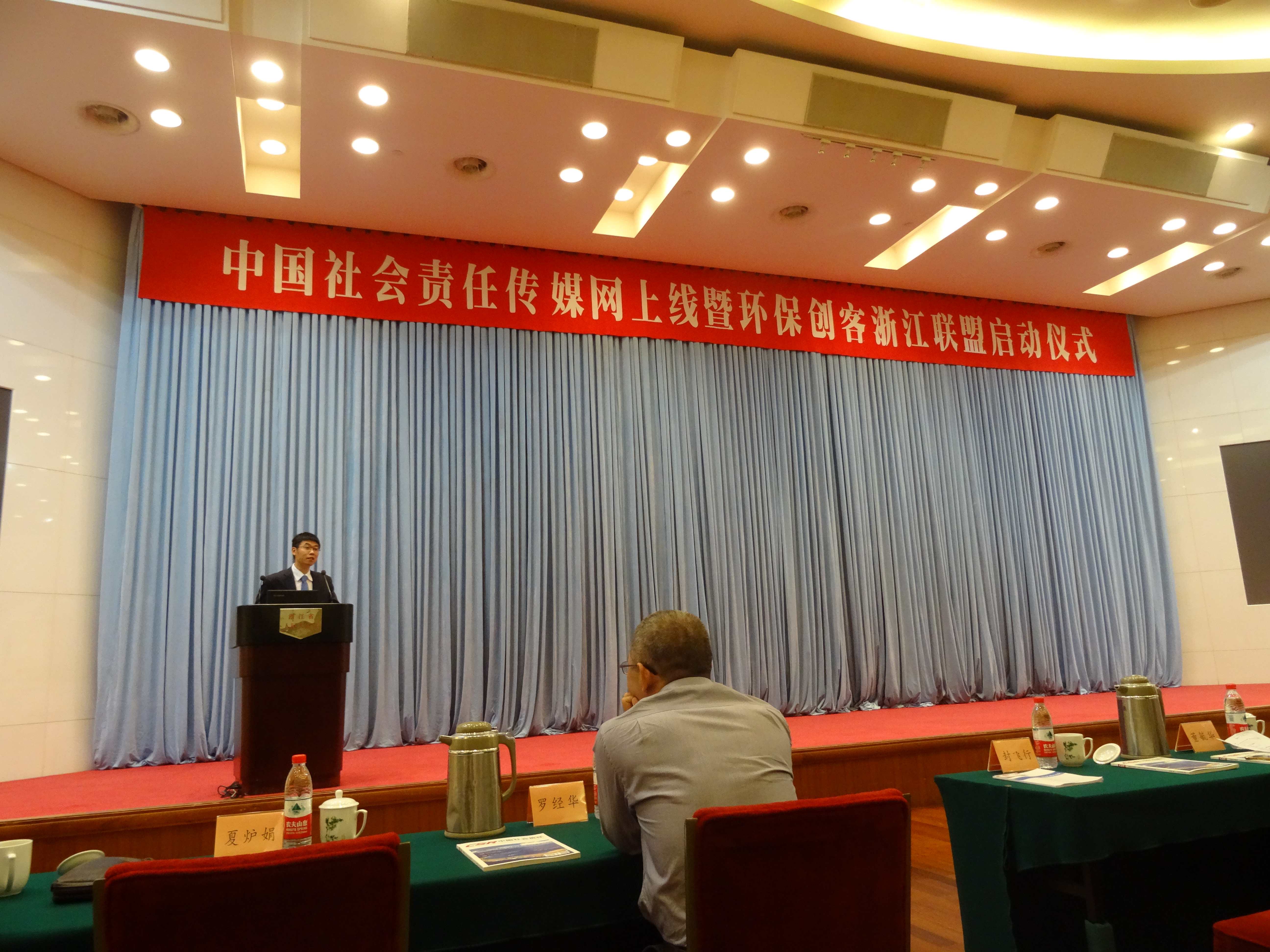 10月9日上午九点三十,在浙江省人民大会堂准时召开了中国社会责任传媒网上线暨环保创客浙江联盟启动仪式。无码影片 "绿之翼"环保协会派代表前往与会。