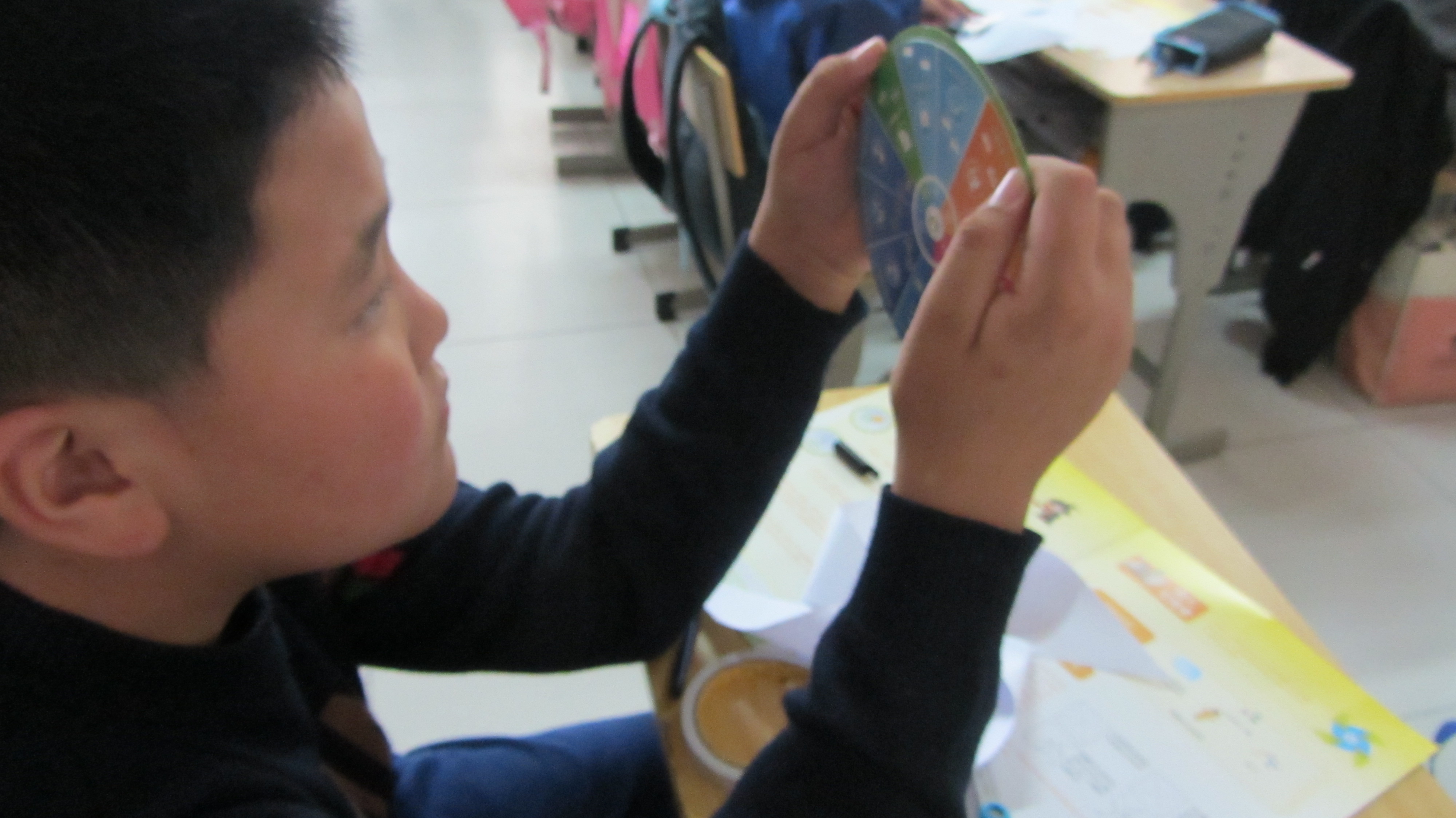此次教学活动主要分为四个部分。第一部分:超人小词典——新能源。教授他们关于太阳能住宅、核电站、风力发电站、氢动力车、微生物生产燃料、波浪照明等新能源知识。第二部分:超人实验室。分发材料,志愿者们细心地教小朋友们制作风车,让他们感受风的力量。第三部分:节能减排碳排量计算。分发彩色碳排量计算器,引导小学生正确使用碳排量计算器。第四部分:给家长的一封信。给每位小朋友分发号召书,希望爸爸妈妈们也可以加入到我们节能减排的行动中来。