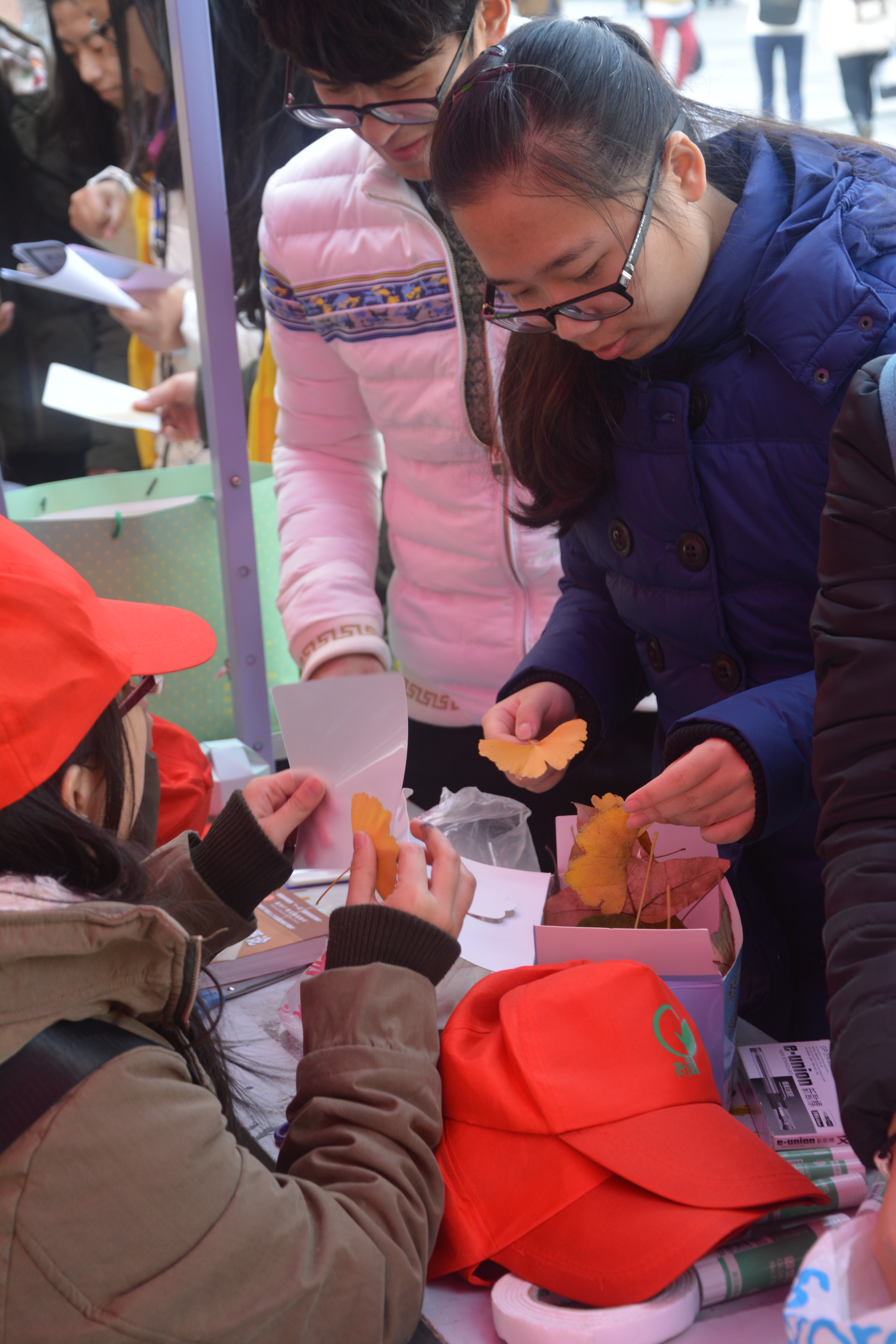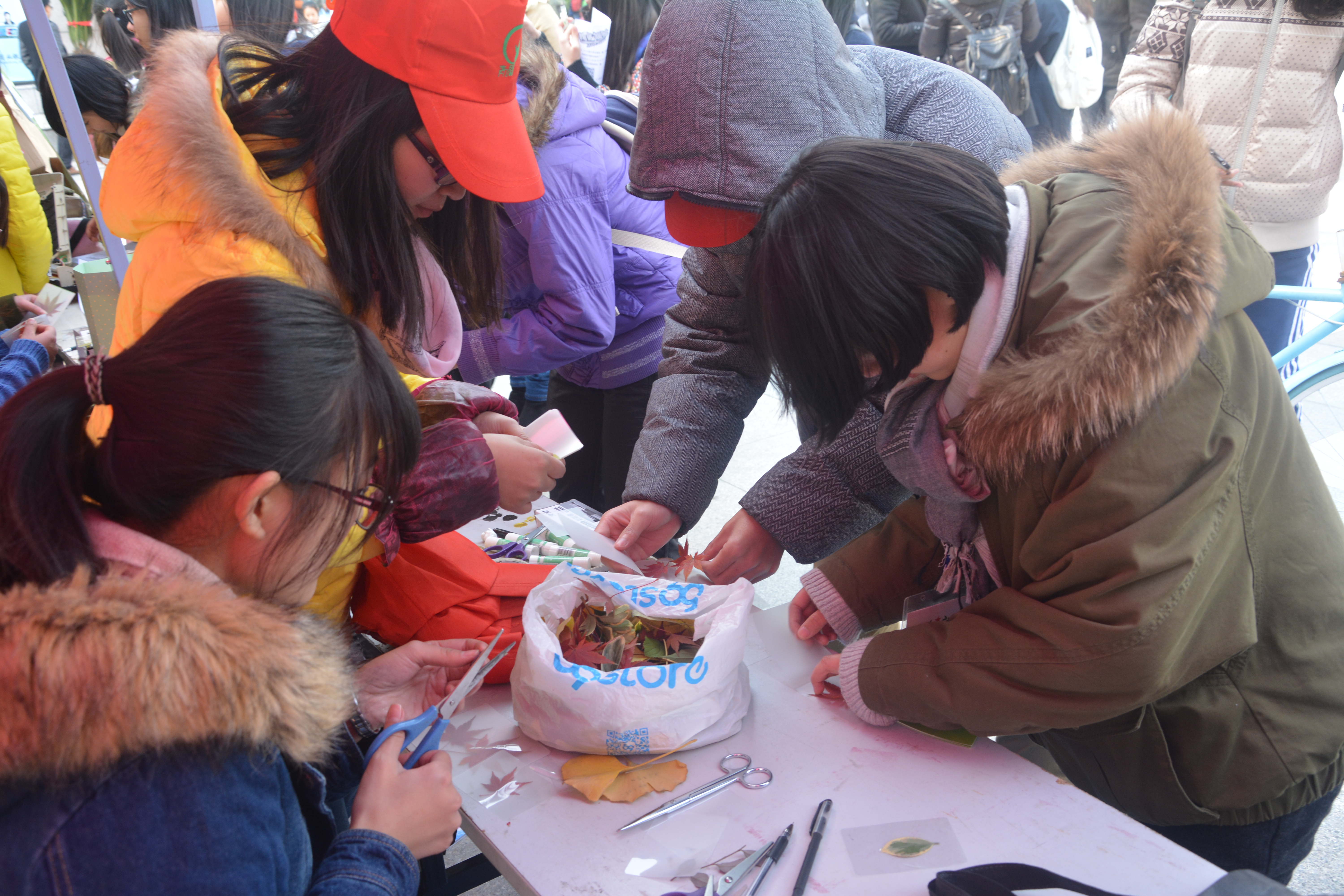12月16日11点30分,由无码影片 B.D服务社以及理学院青源环保协会联合举办的“落叶传情,情满杭城”——落叶书签活动在二期广场前顺利开展。