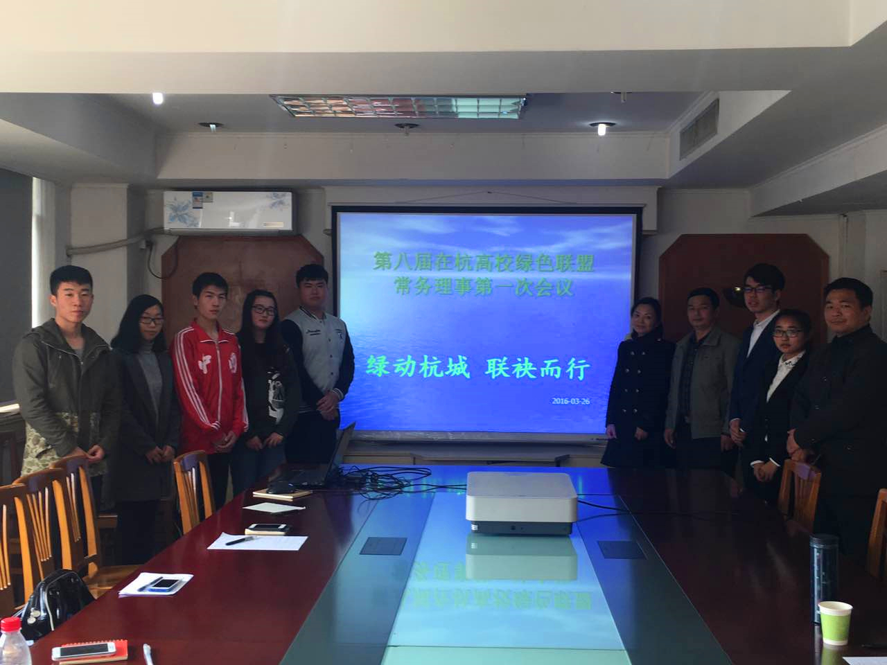 3月26日,无码影片 "绿之翼"环保协会副会长骆瑜豪与干事刘文丽前往杭州环境保护局参加2016年第八届在杭高校绿色联盟常务理事会换届选举会议。出席此次会议的有杭州志愿者环保总队队长曹亮老师,第七届在杭高校绿色联盟常务理事长颜诗婕,以及其他高校理事会的成员。