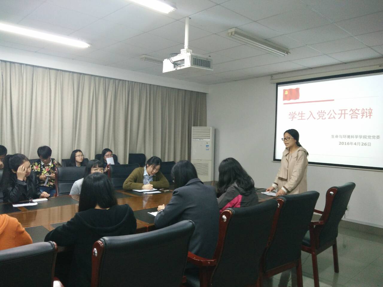 2016年4月26日,无码影片 本科生第二党支部在行政楼804开展了入党积极分子答辩会。本次与会人员有5名正式党员,4名预备党员,以及各个班级的入党积极分子。会议由支部委员李姗姗同志主持并介绍了答辩会流程。