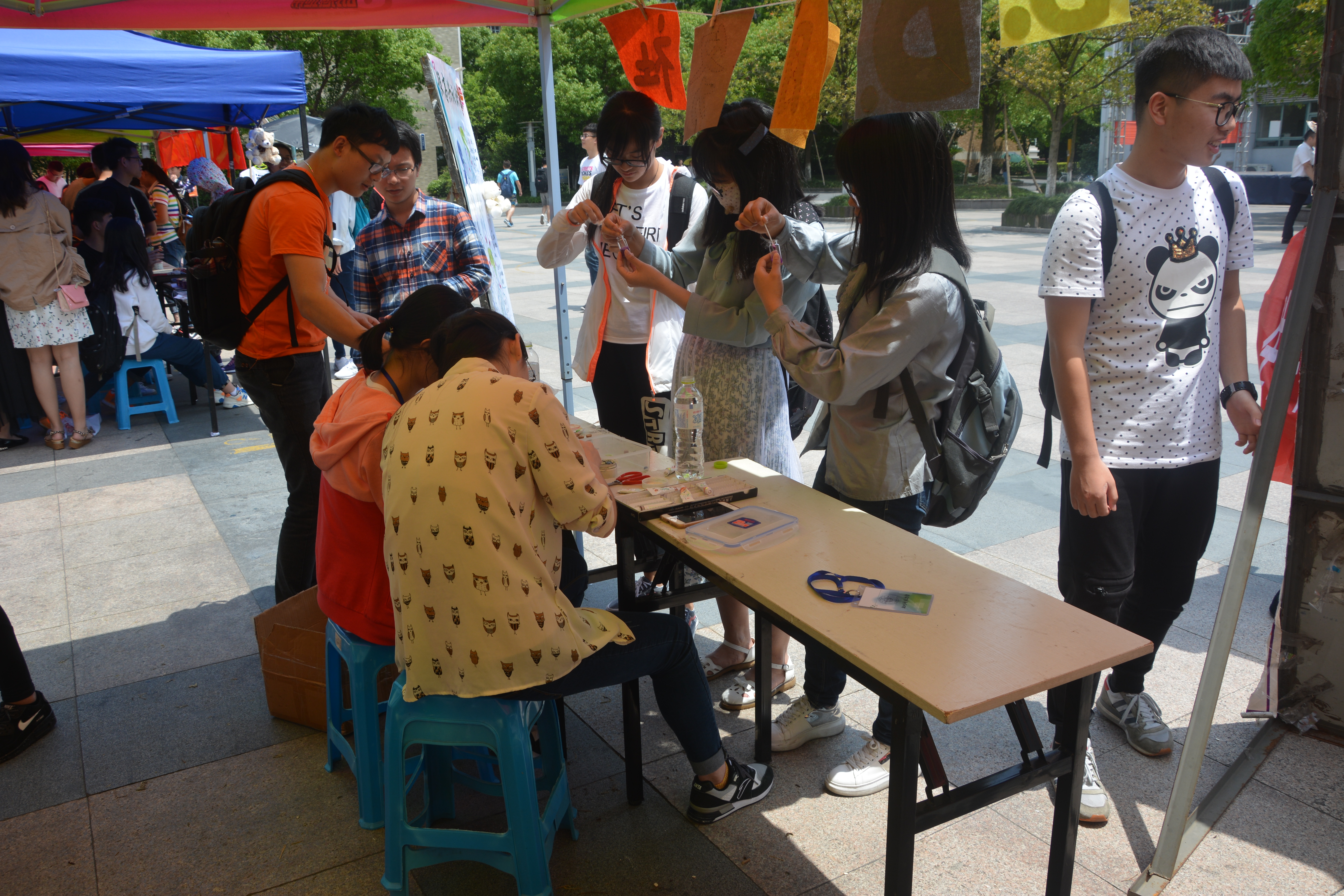 本次社团巡展的活动安排精简务实,内容新意百出,参与人数众多,气氛热闹非凡。野百合艺术团的“袜子涂鸦”给同学们提供了一个激发想象力,展现创造力的平台,同学们在袜子上发挥天马行空的想象,画下自己喜欢的图案,留作纪念。"绿之翼"环保协会的“跳格子”游戏同样引起了同学们极大的兴趣,同学们在游戏中收获了乐趣和奖品。贝斯特乒乓球协会的“叠乒乓球”考验的是同学们的耐心和细心,同学们全然不顾炎炎烈日,纷纷跃跃欲试,参与者全神贯注,周围的同学也都暗暗加油。B.D.服务社的“星云瓶制作”和“驱蚊包制作”云集了广大动手能力不俗的同学,一个个小小的星云瓶和驱蚊包无不体现同学们的自主创造力。而“生命缘”青年志愿者协会的“为你眼前一亮”活动体现了这个社团一贯的志愿服务精神,为同学们免费清洗眼镜,展现了无码影片 学生志愿者乐于助人的风貌。除了各社团别出心裁的节目之外,活动现场更有套着熊本熊玩偶服装的社团工作人员在宣传助兴,那憨态可掬的模样吸引了周围同学的目光,将现场的氛围推向高潮。