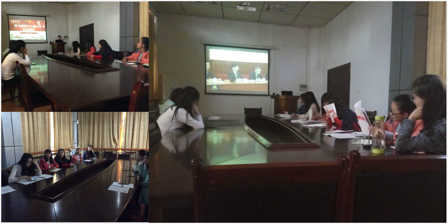 1112下午,在5号楼四楼东会议室,支部召开了专题学习会暨11月份党员固定日学习活动。会议分为3个环节。首先,组织观看了《十八届六中全会公报》全文视频。其次,支部书记陈思带领众党员,围绕“历届六中全会召开的背景和意义、党内政治生活的历史传统关于新形势下党内政治生活的若干准则党内监督条例4个方面内容,对3份重要文件进行了重点学习和解读。同时,书记对支部前期开展的“两学一做”学习教育活动成果进行了总结,提出了“做合格党员”的规范要求。然后,党员就自身存在的问题及整改情况逐个发言,接受其他党员的评价、监督和建议。
