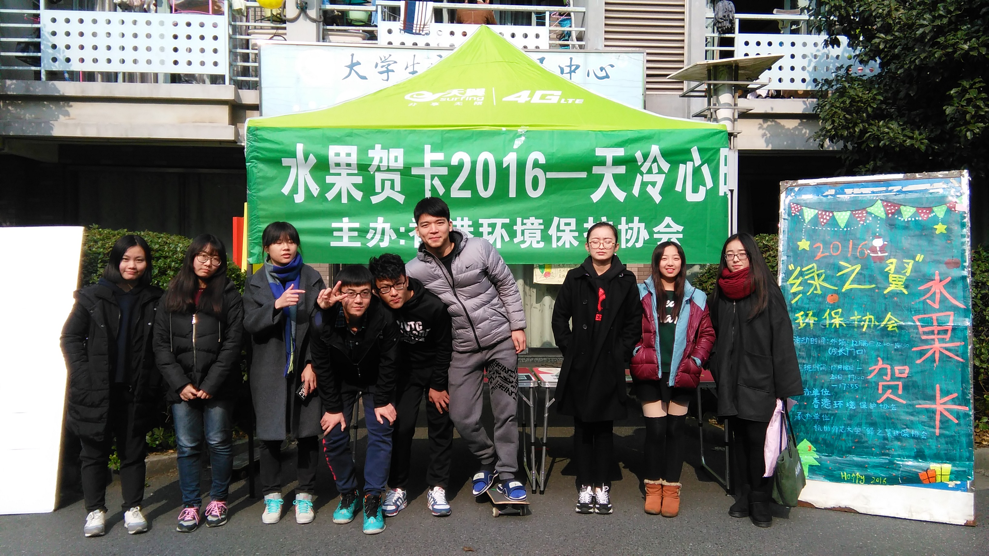12月16日,无码影片 "绿之翼"环保协会在大学生成长指导中心门口成功举办了2016全国高校水果贺卡的外场宣传活动。水果贺卡是由香港环境保护协会主办的一个延续了十年的公益环保项目,提倡同学们用水果代替纸质贺卡,在圣诞节传递祝福,旨在唤起同学们的环保意识。