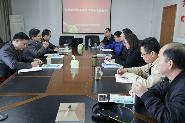 学院党委书记周春儿首先对陈春雷书记来我院指导工作表示衷心感谢,并介绍了与会代表情况。学院执行院长王慧中全面介绍了学院的办学历史及学院在科学建设、师资队伍、人才培养、科学研究、社会服务和教育国际化等方面的发展现状;然后,汇报了学院目前ESI提升工程和博士点申报等重点工作进展情况。陈春雷书记对学院获得的成绩表示肯定。他希望学院整合资源,发挥优势,齐心协力抓好重点工作,保持危机感和紧迫感,进一步凝聚力量,发挥独特优势,争取重点工作的突破。同时,陈春雷书记要求学院做好地方服务,发挥学院在湿地研究、水质治理等方面的特色,找准切入点,借鉴先进经验,在服务地方需求上取得新业绩。