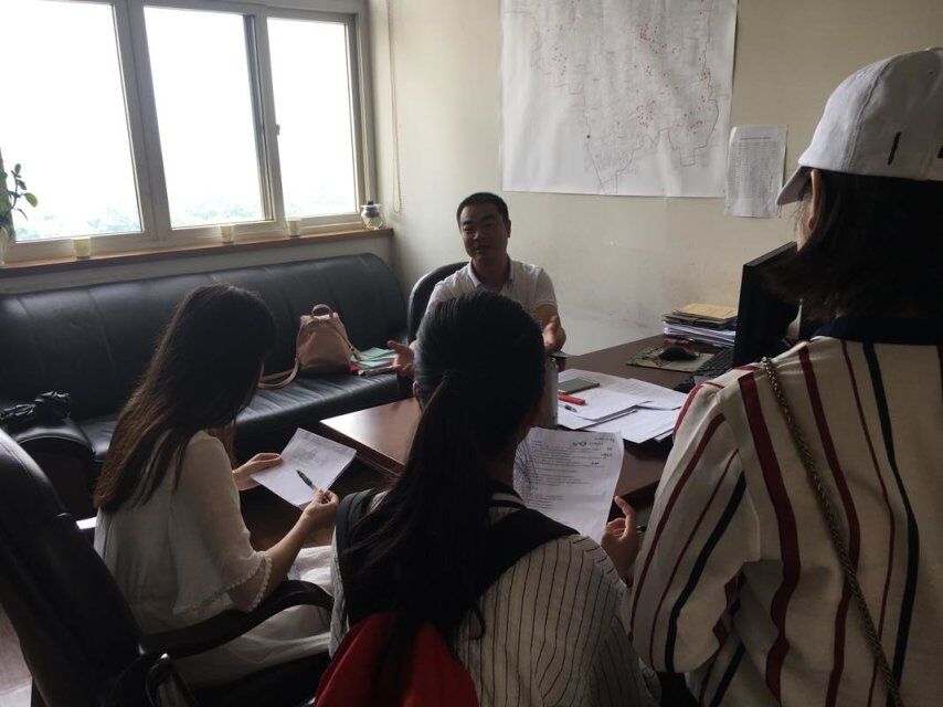 小分队首先找到了办事处的负责人王书记,小分队成员就余杭区农村面貌治理和农业结构转变两个方面向书记提问。根据调研前期准备的调查内容,在农村面貌治理方面,同学们询问并了解到长子村水域利用转型前后对水质污染的对比情况、农业转型所耗费的资源情况以及对环境的污染和改造情况。在农业结构转变方面,同学们提出关于黑鱼塘转变为荷塘的种种疑问,书记一一耐心地为同学们解答。