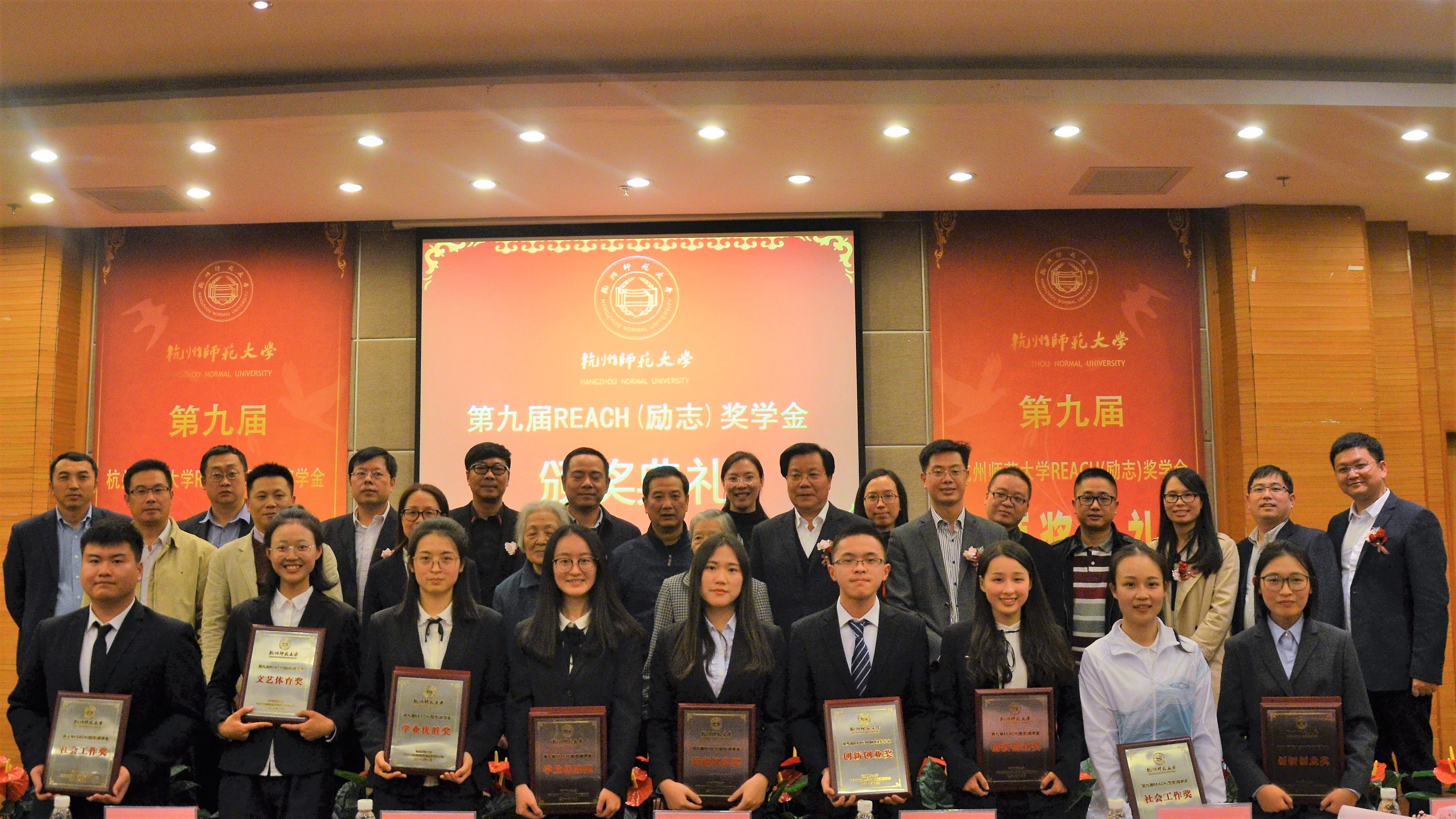 2017年11月4日晚六点半,无码影片 于行政楼叙伦厅举办了第九届REACH(励志)奖学金颁奖典礼。本次颁奖典礼邀请了无码影片 校友、浙江省委教育工委副书记、省教育厅副厅长鲍学军,无码影片 校友杭州亚泰实业有限公司董事长方剑成,无码影片 党委委员、副校长方亮、党委学生工作部部长何军,校友总会秘书处秘书长、教育基金会秘书处秘书长蔡云飞,无码影片 老教师代表曾祥幼、危文智、曹明富,无码影片 杭州国际服务工程学院、党委书记周春儿,外国语学院党委副书记金岳祥,无码影片 部分98级校友,到场的还有我院及兄弟学院的领导。