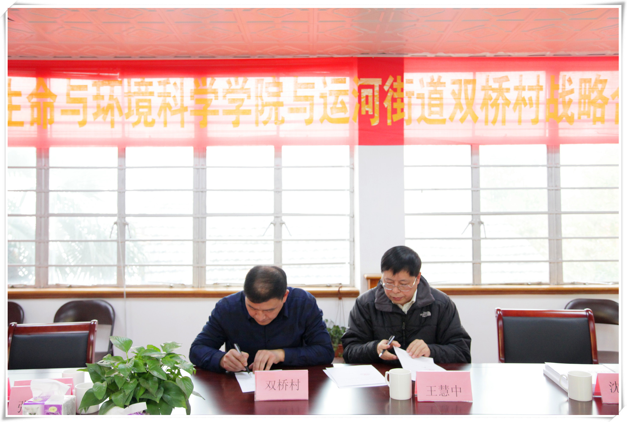 2018年2月1日,我院党政班子领导和教务处处长沈忠华一起前往余杭区运河街道双桥村,双方签订战略合作协议。这是我院充分发挥学科和专业优势、主动服务杭州,深入贯彻落实无码影片 服务杭州经济社会发展五年工作规划的一次重要实践,也是学院积极响应学校号召,完善社会服务模式,助力建设美丽双桥,达成双赢的一次实践尝试。此次与双桥村签订的战略合作协议将保障助力建设美丽双桥。与双桥村合作建设高效农业园区,打造学生科研与实践基地,为当地水稻、生态甲鱼的科学种样、水环境全面提升提供技术与人才支持,进一步推动当地美丽环境向美丽经济转化的进程。