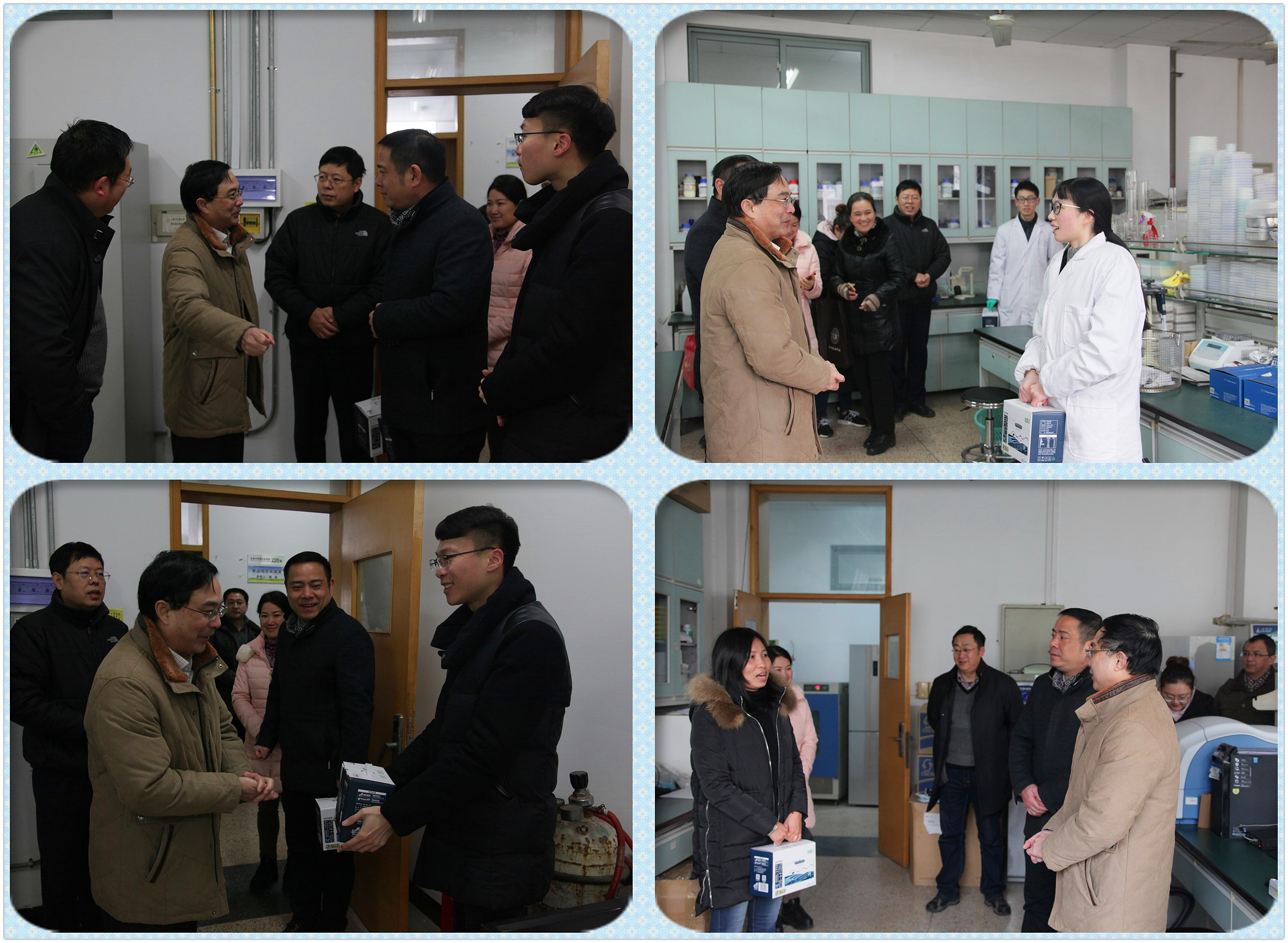 张志军,方亮一行先看望了仍在从事科学研究的我院师生,对他们假期从事科研工作表示感谢和慰问,同时为他们送上了新春祝福和慰问品。校领导详细询问了实验室的管理方面和相关工作,并对他们能在寒假期间坚守科研岗位给予赞赏。