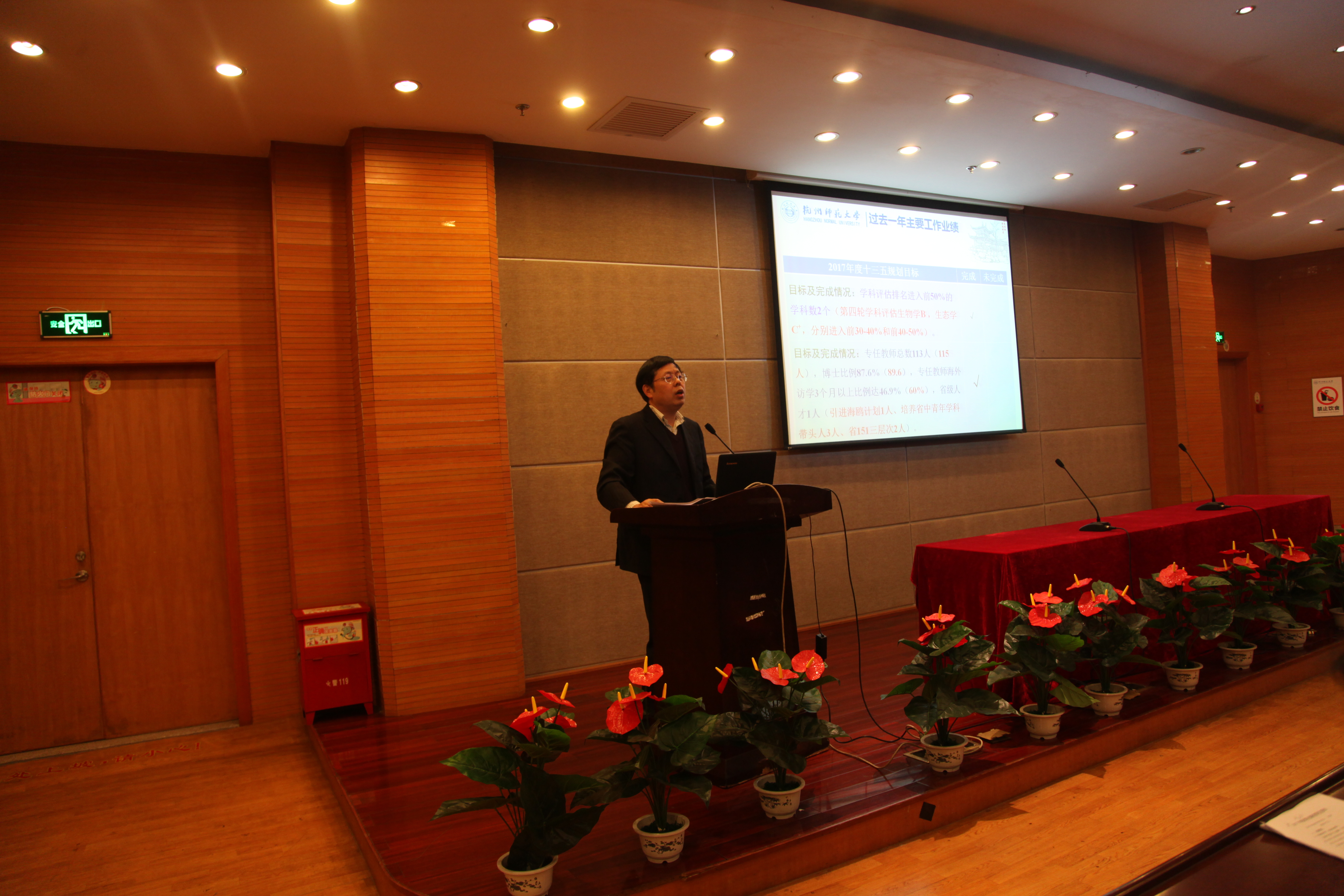 其后,王院长向全体教职工传达了校党委书记陈春雷在学校2018年工作会议上的重要讲话精神,并对过去一年工作进行了回顾,对上学期学院完成的主要工作进行汇报,并对存在的问题进行了分析,提出了新学年行政工作要点,强调学院工作要以规划为引领、人才为抓手、学科为龙头,积极充实内涵,寻求新的突破,勉励大家新的一年群策群力,助力学院新的发展。