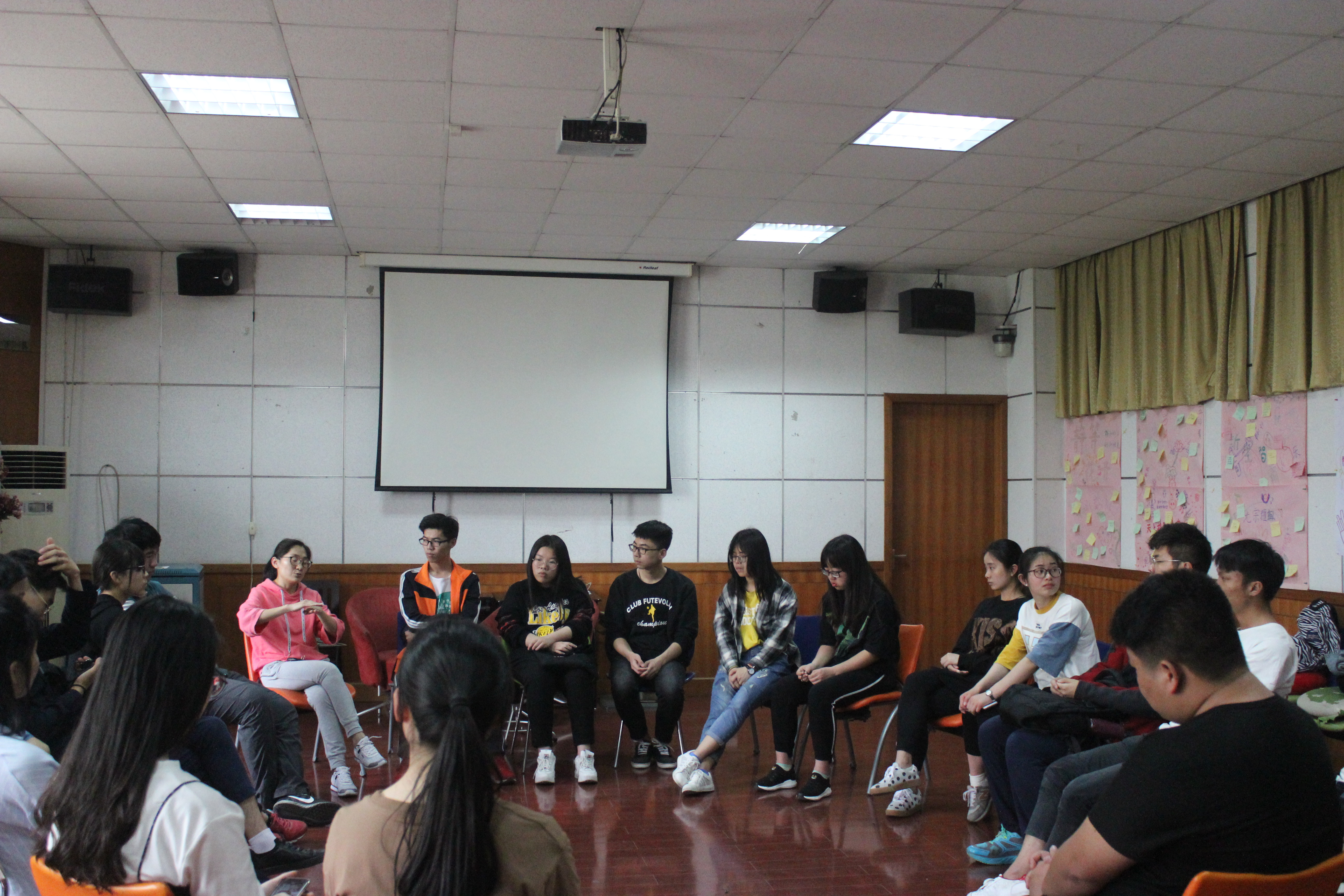这次的讲座不似以往,老师和同学们并不是在一间大教室进行讨论与学习,而是在八号实验楼116号教室围坐成一个大圆圈,像茶话会般悠闲与自在。起初,老师让同学们一起玩了一个小游戏,游戏的换了营造了融洽的氛围。孙老师随后询问各位心理委员在工作时有什么烦恼,有一位男同学说自己成为心理委员后,认为班级同学们的心理状态良好,却认为自己的存在感很低。而另一位女同学说,在工作时有许多同学会去和她诉说自己内心的烦恼,比如恋爱问题,友谊问题等。她感觉作为一位女生,爱八卦是女生的天性,她每次都积攒着那么多的八卦不能说出口,十分焦虑。孙老师则说:“作为大一的心理委员,多多少少会有一点感觉自己存在感低的现象,我们需要学会观察和辨别。而心理委员有一个重要作用就是成为班级心情的晴雨表,你们是最接近班级的一员,知道谁恋爱了,谁失恋了,谁家中有事了。”接着,孙老师讲述了她在工作中所遇到的问题和事例,她幽默风趣,广泛的知识面,以及不急不燥有条有理的语言深深的引着每一位同学。