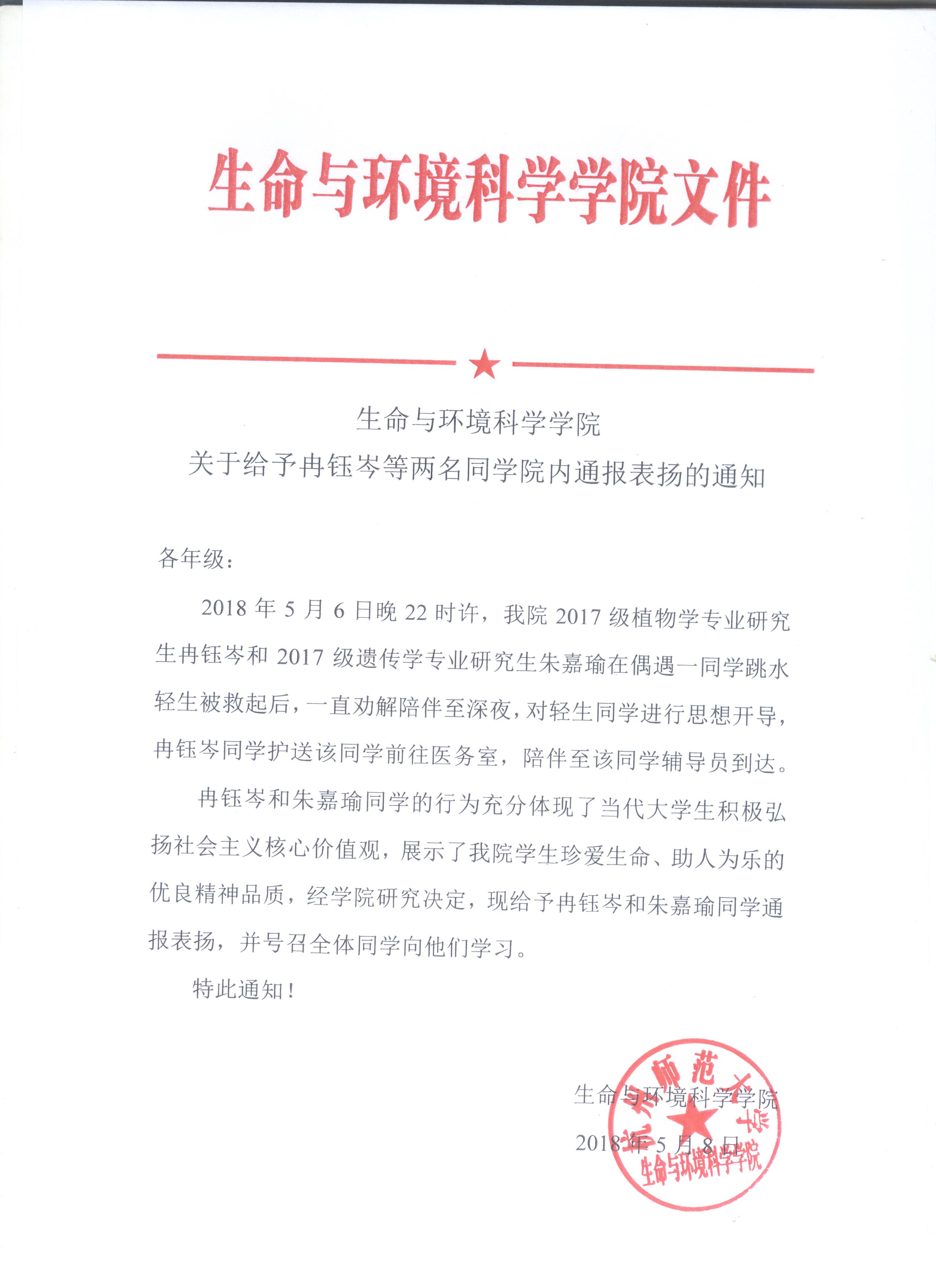她们两人有一个共同的闪光点,就是真诚善良,充分体现了当代大学生积极弘扬社会主义核心价值观,展示了杭师人珍爱生命、积极向上乐于助人的优良精神品质,值得我们全体同学向她们学习。