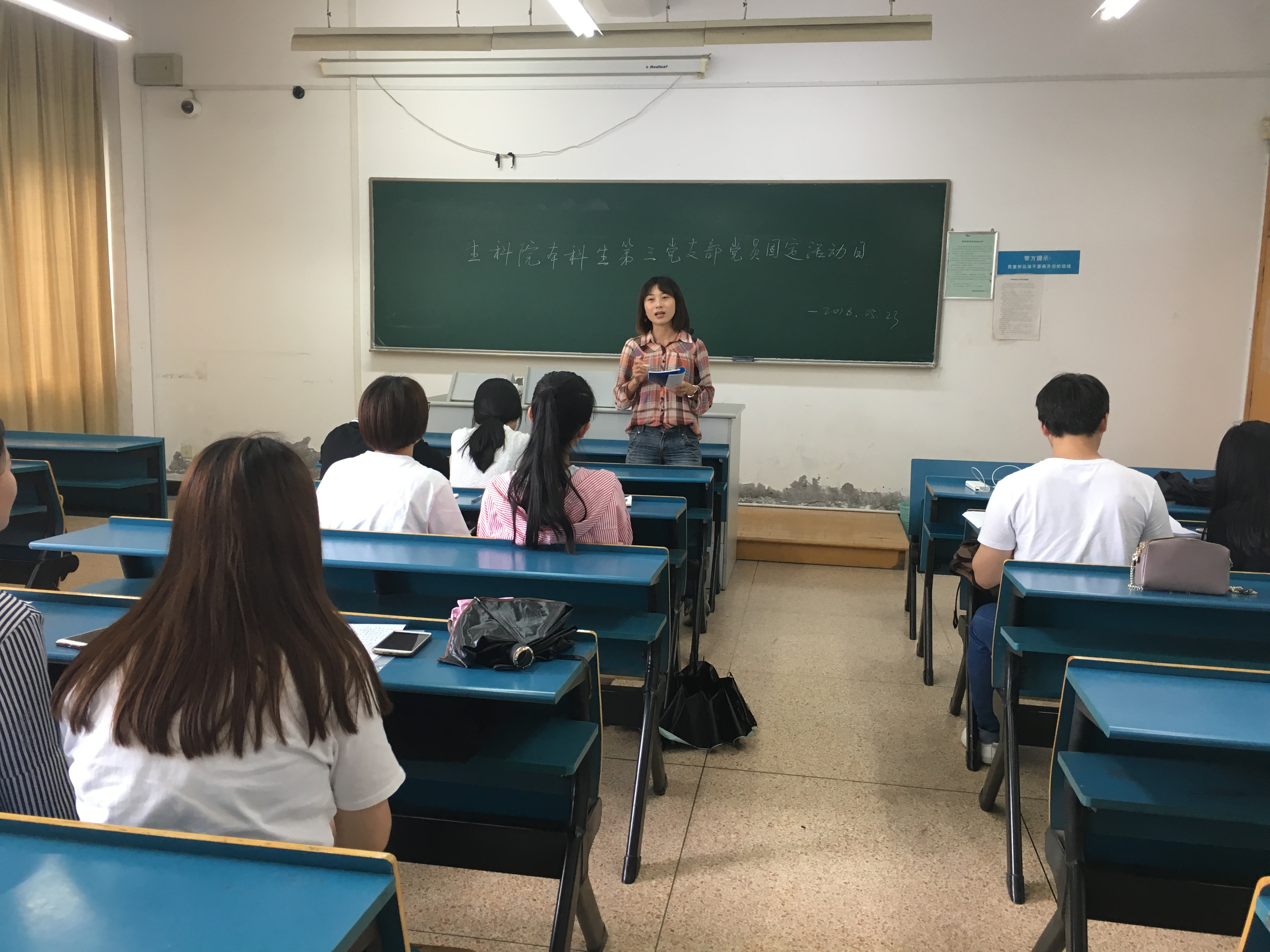 首先开展的是本月党员固定活动日的学习,内容是习近平在北大120周年校庆的讲话以及习近平在纪念马克思诞辰200周年大会上讲话精神的学习。支部书记吴晓梅老师发言,她认为:作为一名教师,最重要的是师德,相比于教书更重要的是育人,只有知识,没有品德的人会是社会的“危险品”。只有得才兼备的人才是社会所需要的人才。随后支部党员也就“青年说”发表了自己作为一名党员的看法和努力方向。
