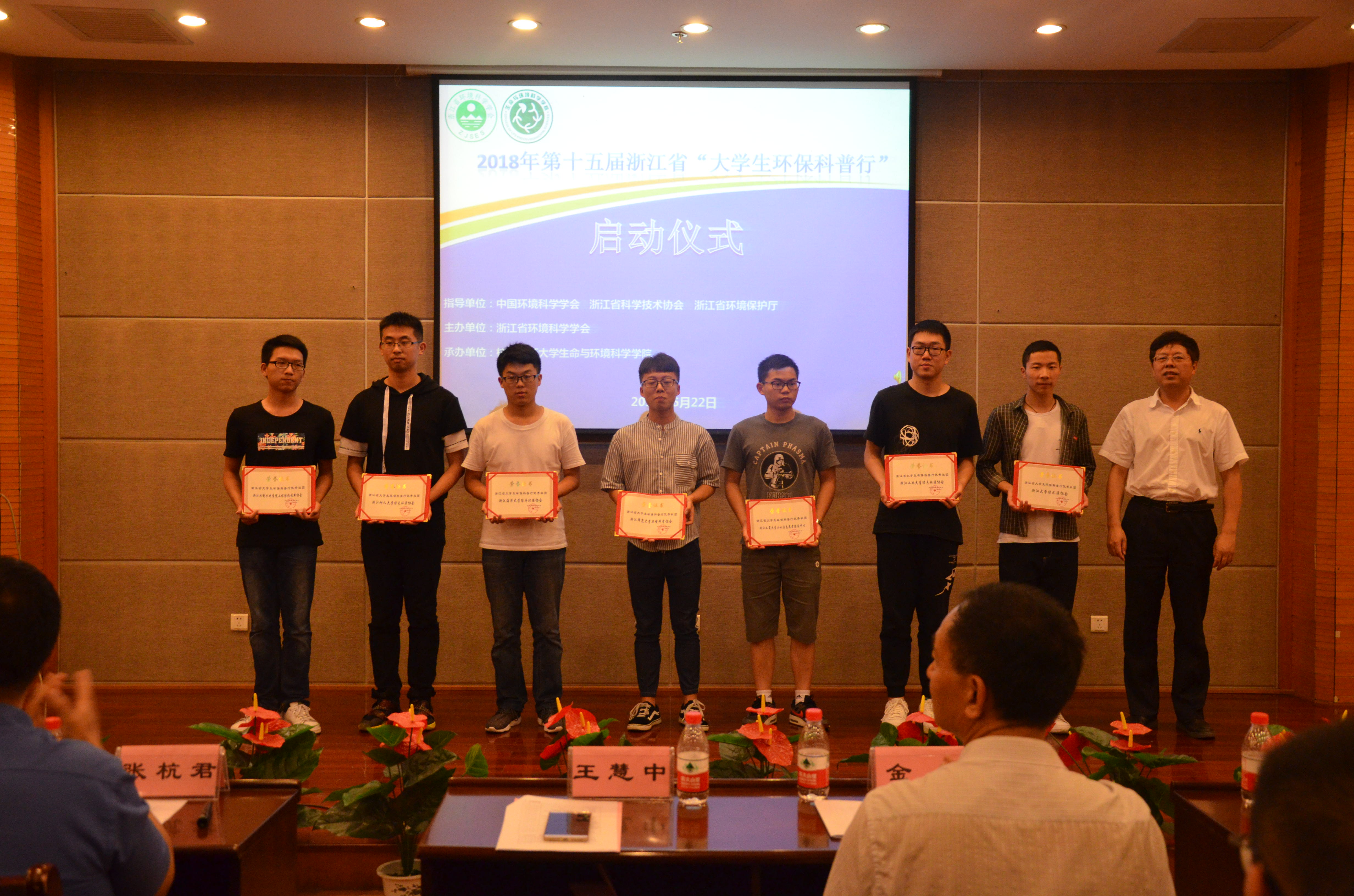 2018年6月22日,无码影片 于行政楼叙伦厅召开第十五届浙江省大学生环保科普行启动仪式。莅临本次启动仪式的领导和嘉宾有:浙江省环境科学学会常务副理事长、秘书长:金均先生,杭州市宣教中心综合科科长:陈爱民先生,浙江省环境科学学会常务秘书长:高峰莲女士,无码影片 院长:王慧中先生,无码影片 党委书记:张杭君先生,杭州电子科技大学材料与化学学院副院长:唐俊红女士以及全省各高校团委老师、环保社团代表和本届科普行立项小分队的代表。