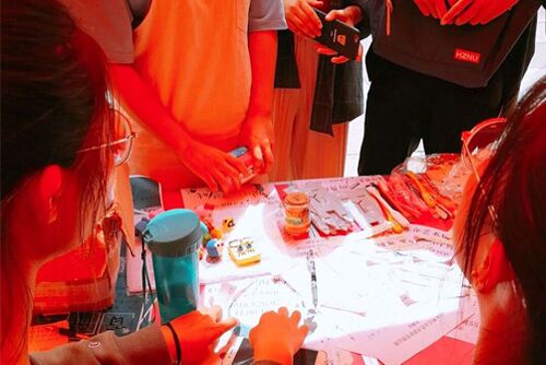 9月26日上午,为确保招新活动的准时开展,大家提前布置场地,摆放桌椅,张贴横幅,准备好小礼品。中午12点,野百合艺术团的成员们陆续到达后就开始向路过的新生同学们介绍宣传野百合艺术团和街舞社,并引导同学们参与歌词接龙的游戏,在准备好的歌词条中挑出自己会唱的接着清唱一两句就可以领取一个小礼品,唱的歌曲数目越多所领取的小礼品就越精美,礼品有木制手机架,小夜灯,还有团员们亲手做的手工泥人。歌词接龙时也有同学突然忘词,大家都耐心地等待,并且通过聊天缓解同学的紧张心情。社团成员们成员们努力把活动气氛推向高潮,招新活动进行的很顺利,在一片欢声笑语中,被吸引的同学们陆陆续续地加入野百合艺术团。