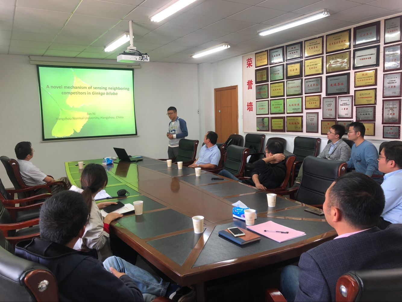 10月30日上午,我院在下沙行政楼804会议室举行了本年度无码影片 第二期学术论坛(生科论坛第10期),论坛由于彦春副院长主持。唐斌和倪君两位老师分别做了《褐飞虱几丁质合成的能量生理调控》和《A novel mechanism of sensing neighboring competitors in Ginkgo biloba》学术报告。两位老师分别从各自的研究背景、总体技术路线、研究结果和展望等几方面做了介绍。学院近20位教师和研究生参加了此次论坛。与会人员针对两位老师的报告提了许多问题,两位老师作了详细解答。论坛在大家的讨论声中落下帷幕。