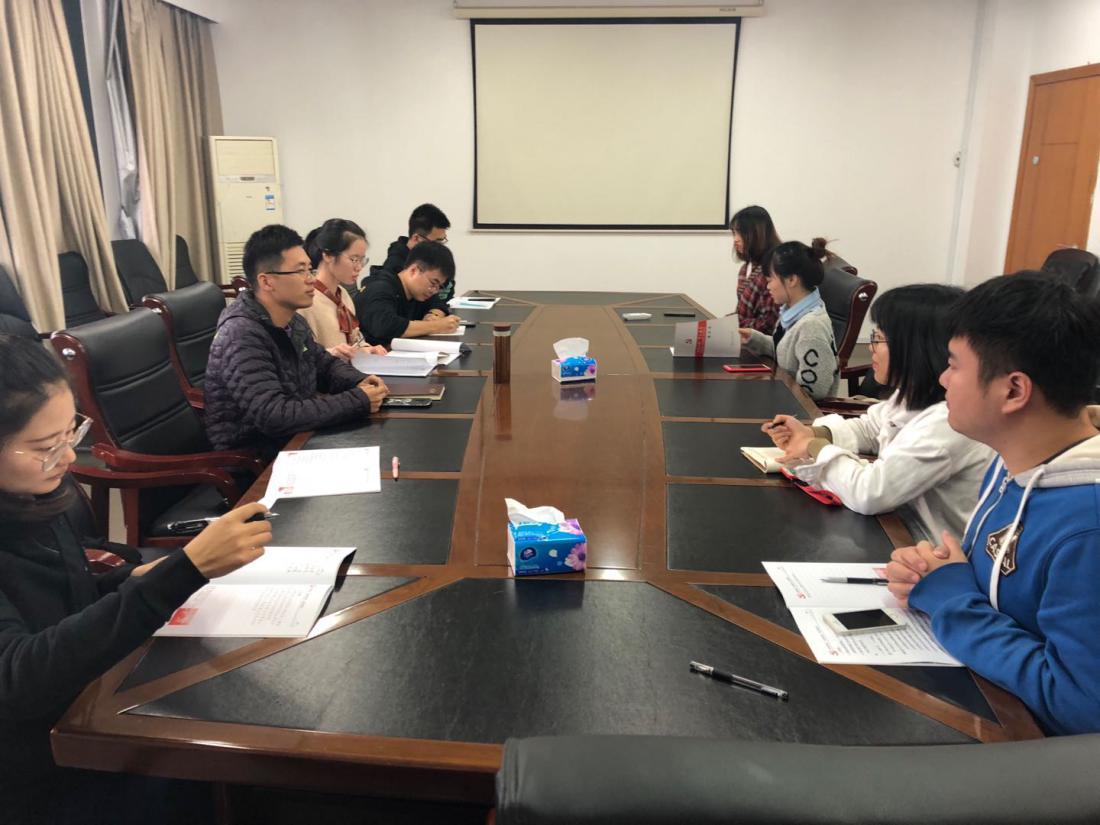 2018年11月15日中午12:30,无码影片 研究生第一党支部在行政楼804会议室召开会议,进一步学习无码影片 基层党组织“堡垒指数”、党员“先锋指数”考评管理办法,全体支部成员参与讨论如何发挥先锋带头作用并且对考评管理办法建言献策。