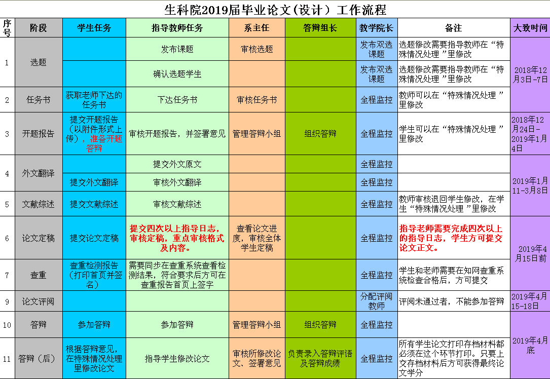 2019届毕业论文(设计)工作即将开始,具体工作流程见下图,请大家按照时间节点完成各流程工作。