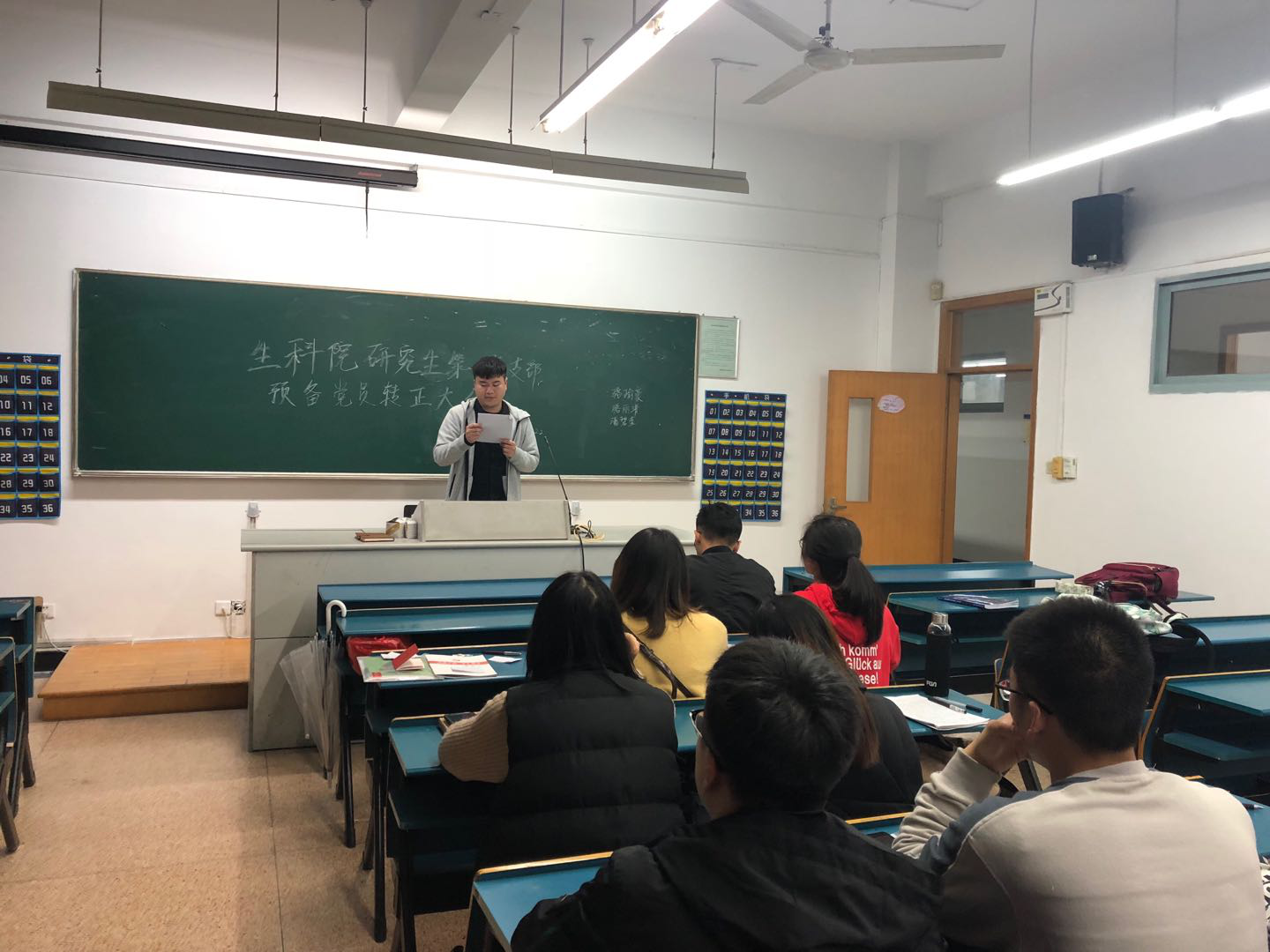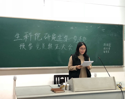 2018年12月3日16:50,无码影片 研究生第一党支部预备党员转正大会在教学楼a楼213准时召开。研究生第一党支部书记岳龙华老师出席并主持了本次会议。经过一年的考察,骆丽清、骆瑜豪、潘碧莹共三位同志通过支部大会讨论并按期转正。