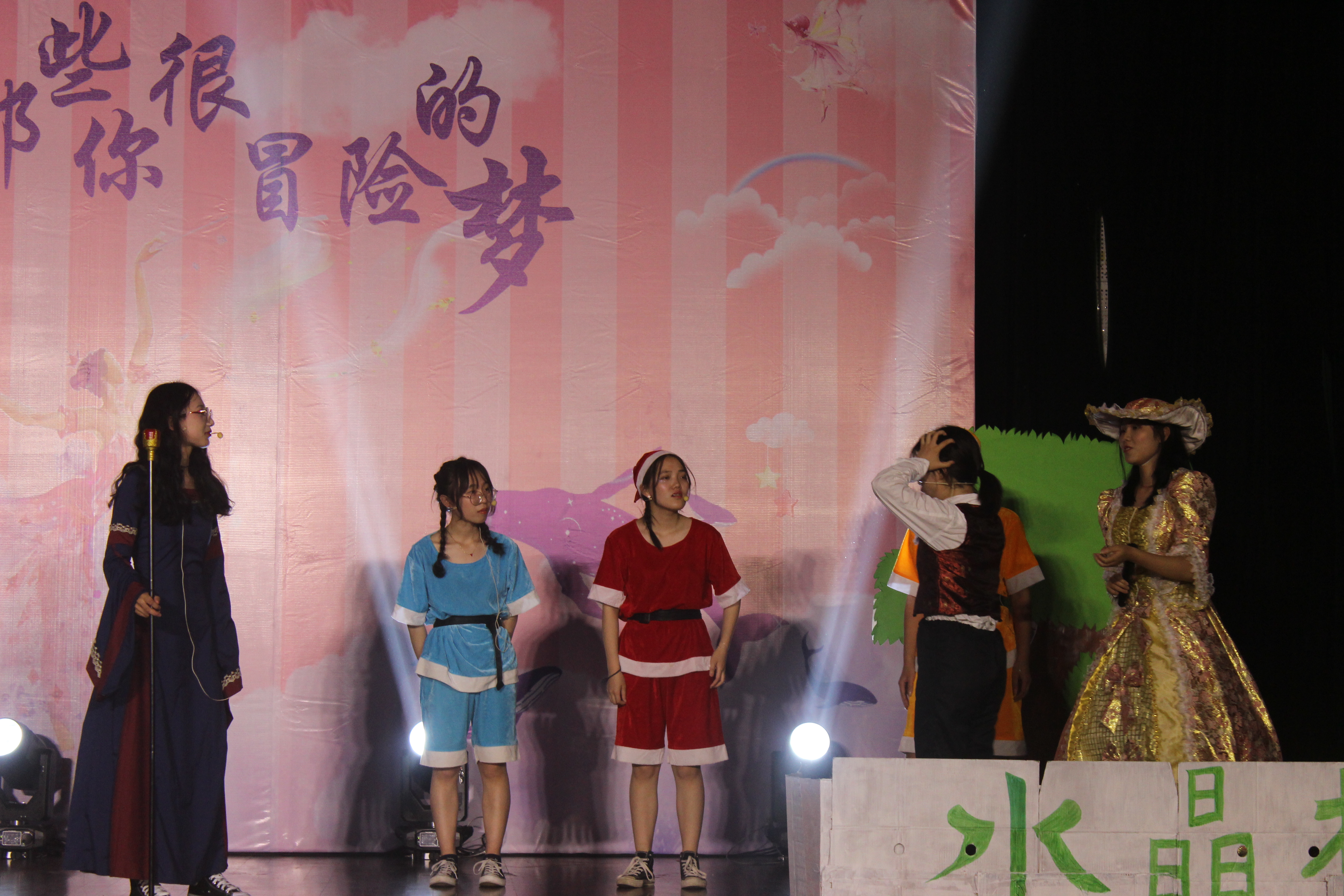 大赛开始前,首先播放了各班级班副的采访视频。共有五位班副出镜,他们都表达了对班级和同学美好的祝愿。接着是由野百合艺术团带来的开场舞,大气优美的舞姿揭开了本次大赛的序幕。大赛正式开始后,首先上场的是环食181班,他们带来的表演是《凡星公寓》。该表演由两幕组成,为观众们展现了年轻人们之间的友谊,生活无论怎样,总有朋友常伴左右。接下来由环食182班带来的《夏洛特烦恼》,该剧展现了难忘的校园记忆、蓦然回首的真爱。通过一幕又一幕的剧情推进,将带来正能量的"爱与梦想"的故事主题不断深化,观众们在欢笑与感动中见证那段时光,也由此认真思考人生。第三个上台的班级是生科181班。他们带来的是《不一样的童话》。该剧由童话故事改编。将传统的《白雪公主》,《青蛙王子》等故事联合演绎。呈现出不一样的精彩,传递一样的“真善美”价值观。到此,上半场的表演全部结束。