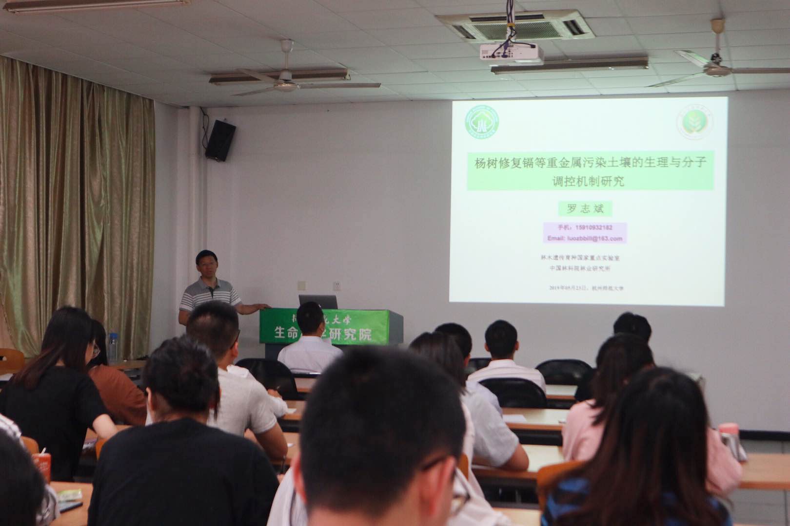 罗志斌研究员在报告中介绍了杨树通过根尖吸收、液泡区室化及增强谷胱甘肽合成等生理与分子调控过程的抗镉新机制。该报告拓展了本院师生的视野,进一步提升了学生对生命科学领域学习的积极性。