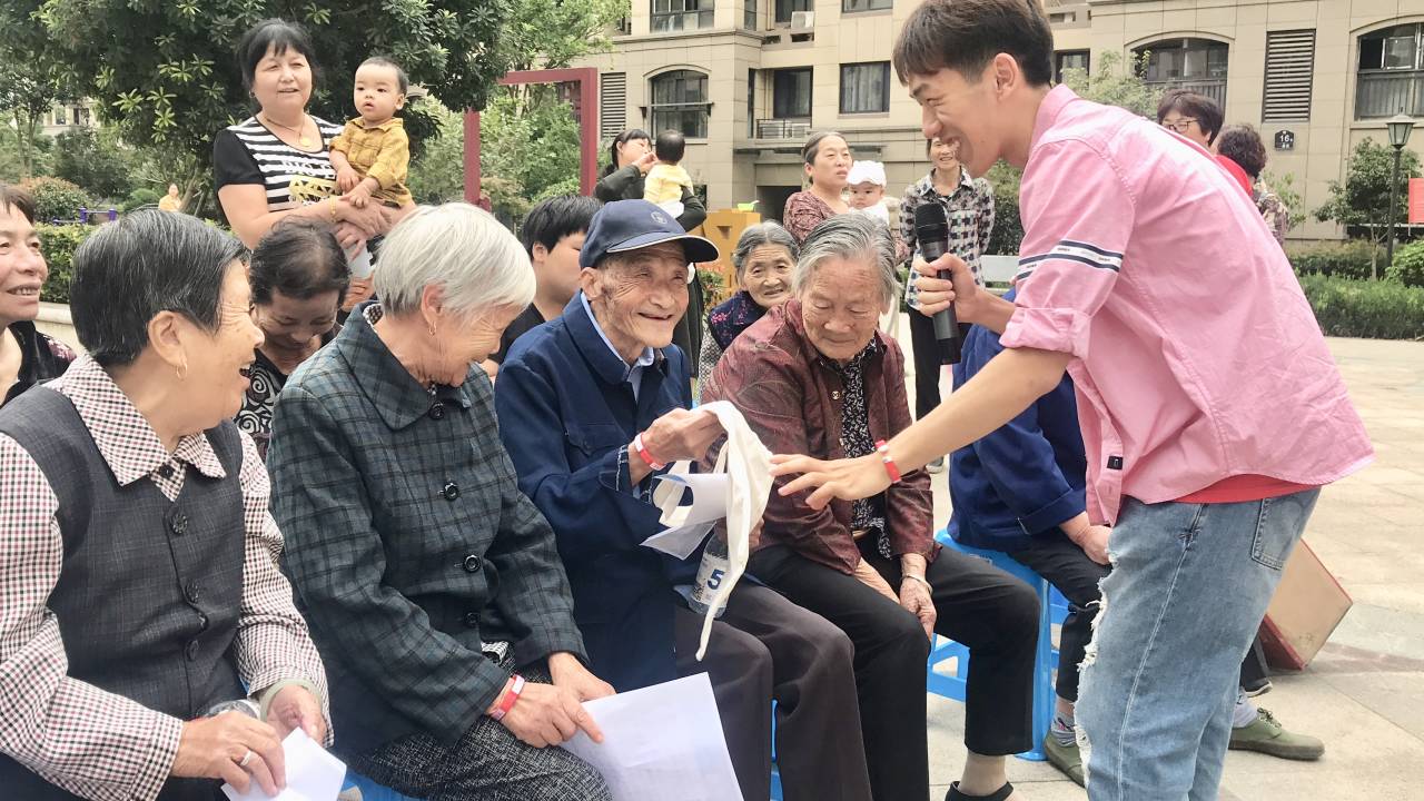 杭州突然转冷的天气,不断的大风吹不灭食安171学子开展主题班会的热情。活动伊始,准备好的三十张凳子已经坐满了前来参加活动的居民,主持人与开场人进行了活动的热场环节。“喝热牛奶后可以马上吃橘子吗?”“豆浆是否可以放入保温杯里?”一系列的生活食品安全小常识的提问,以及小手环的送出,让参与的居民热情越来越高涨。期间,唱红歌的环节更是让气氛提升至最高潮。老一辈的爷爷奶奶唱着以前时候的红歌,歌声中传递的是对祖国,对如今生活美好的感激之情;还有叔叔阿姨们唱着如今耳熟能详的红歌,歌声中传递的是对祖国,对今后生活越来越好的向往与祝福。在最后的知识竞赛环节中“对于三聚氰胺、苏丹红等我们之前经常听到的‘毒奶粉’事件等,这些东西是否是食品添加剂?”“我国的分配制度是什么?”食品安全问题与党建问题穿插提问,主持人在居民回答错误时,会向所有人进行问题知识的解答“三聚氰胺、苏丹红等不属于食品添加剂,这些属于非法添加剂,而食品添加剂只要剂量在国家允许的范围之内使用,是安全的,希望大家不要谈‘添’色变。”