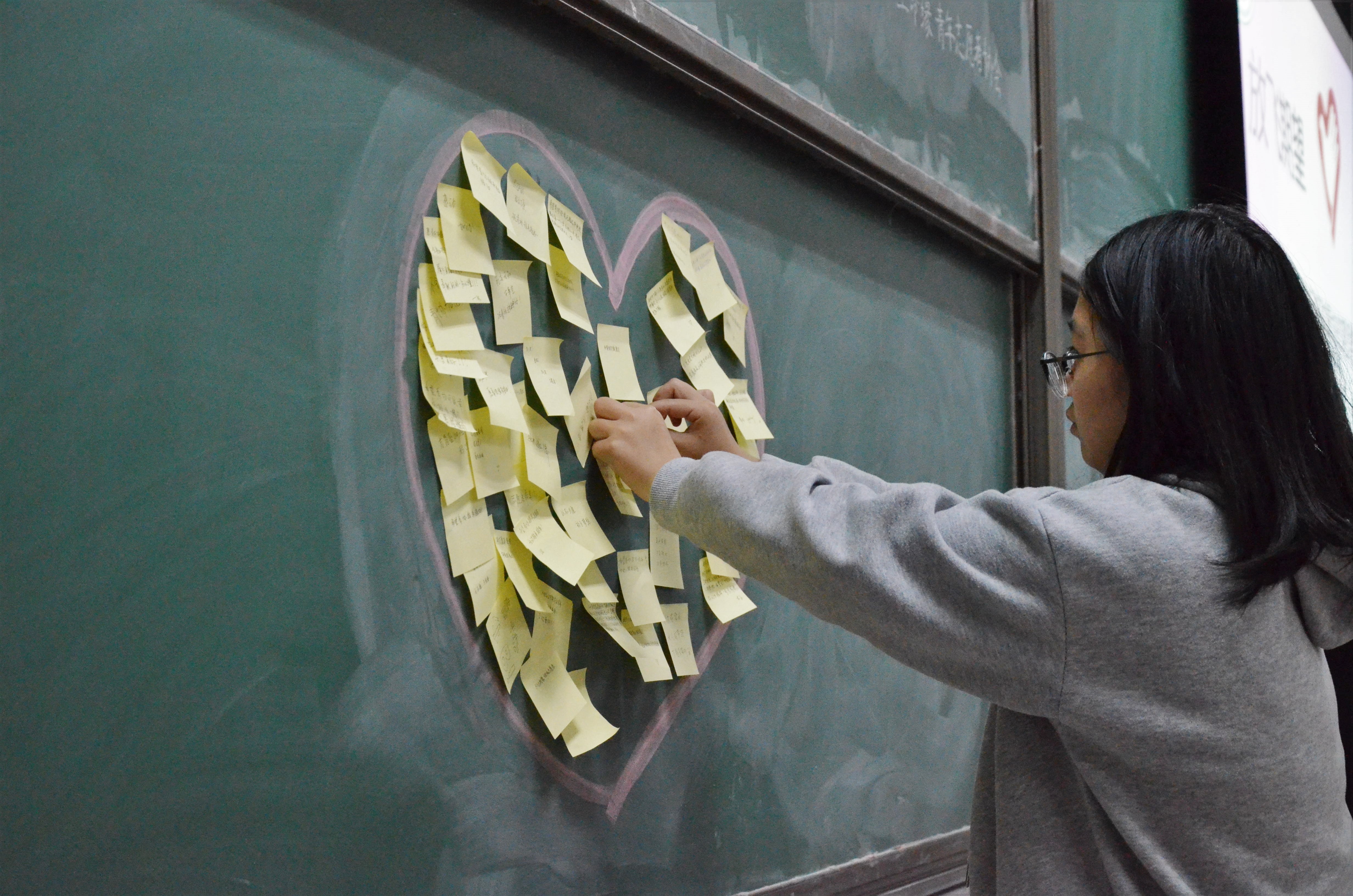 首先,主持人简要讲述了青年志愿者的历史并播放了浙江青年志愿者主题歌的MV激发了同学们对志愿服务工作的好奇心。然后,邱宇虹学姐向同学们详细讲解了志愿者礼仪与形象管理这方面的知识,同时通过与同学们互动来加强同学们对志愿者行为举止规范这方面的记忆。紧接着,刘志铭学长通过和同学们分享他当志愿者的亲身经历向同学们列举了成为志愿者所需的品质以及成为志愿者的优点。在动员大会的最后,同学们将自己的感悟以及对青协的期望和祝福写在便利贴上并且贴在了黑板上。