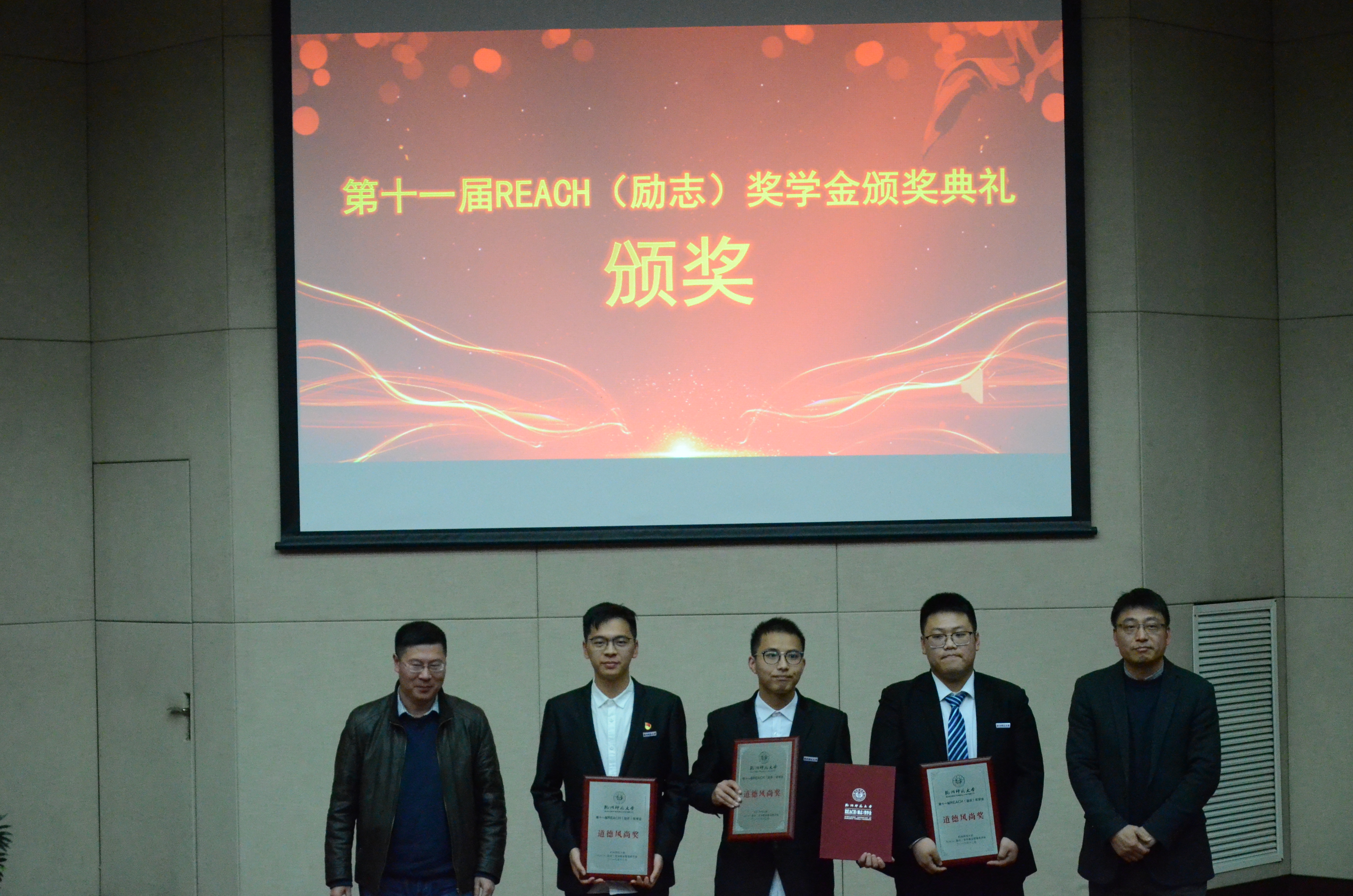紧接着,由杭师大无码影片 执行院长张杭君宣读了无码影片 第十一届REACH(励志)奖学金的获奖者名单。他们分别是:创新创业奖获得者:林达珂、赵佳斌、吕夏晨、王莎莎;社会工作奖获得者:单小草、郑思睿;学业优胜奖获得者:熊旭萍、刘永康;文艺体育奖获得者:赵沁怡;道德风尚奖获得者:寿泽榆、余思杭、柴家乐。颁奖嘉宾为获奖者们一一颁奖并合影留念。方剑成校友、肖自力校友以及贺国标校友分别接受了主持人的采访,向大家分享了自己职业生涯的经历以及对学弟学妹的建议等。单小草同学与寿泽榆同学也相继发表获奖感言,表达了自己对于REACH(励志)奖学金的感谢。