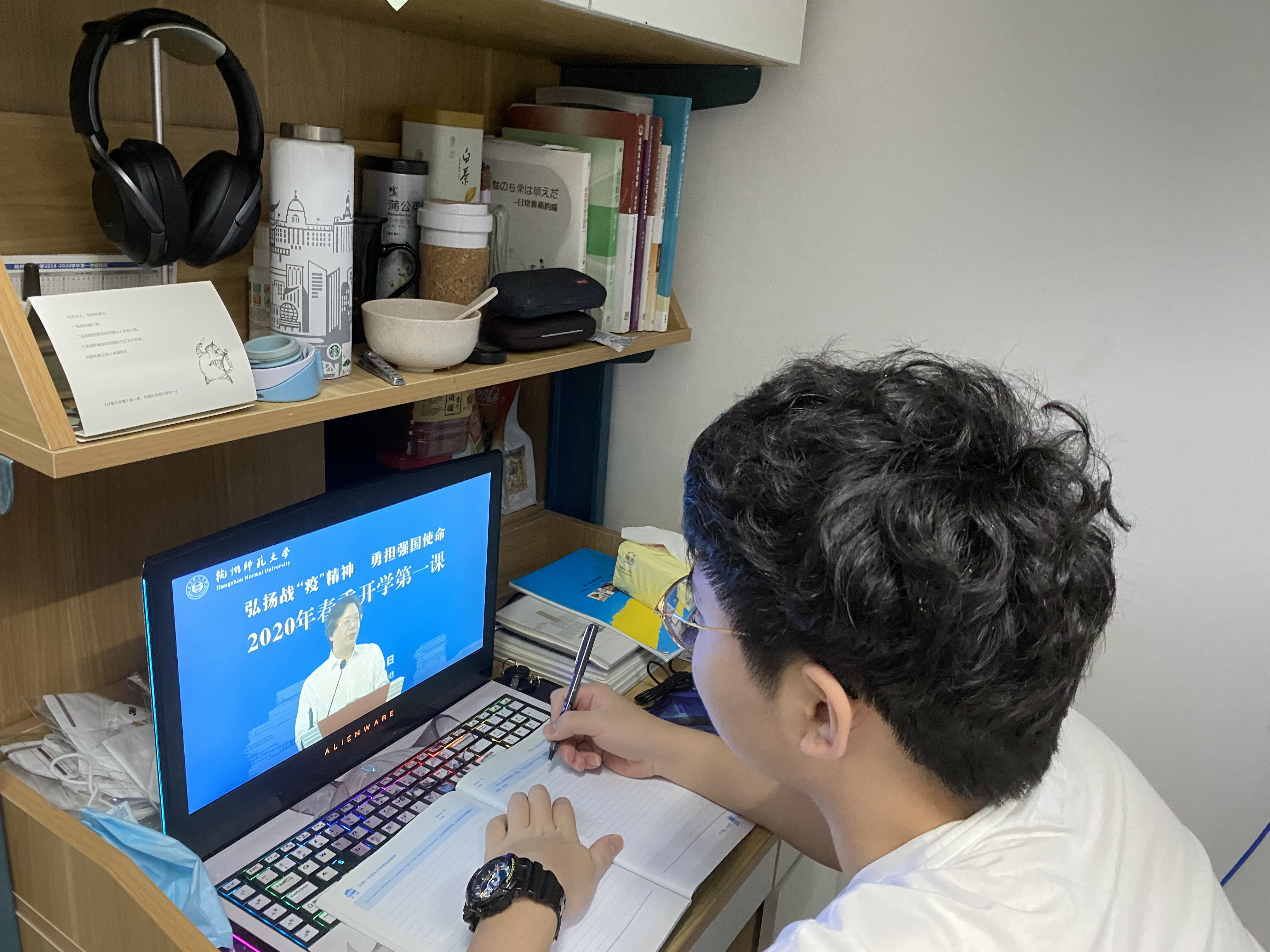 有同学如是说:“今天观看了开学第一课,深有感悟。在这次疫情防控的大考中,全国人民众志成城,体现了中华民族强大的凝聚力。我校援鄂医疗队积极响应党中央号召,在抗疫期间发挥了重要作用。他们不怕牺牲,甘于奉献的精神应当成为我们学习的‘教科书’。学校对于返校的规划也做了最大的努力,饮食起居事无巨细。”还有同学回忆起前几天省委书记车俊来我校访问时的场景:“书记来看望我和同学们时说,接下来的90后年轻一代将逐渐挑起国家大梁,引领时代发展,承担着重要角色。在了解到我和舍友是提前返校的志愿者后,车书记亲切提醒我们疫情尚未结束,在帮助他人的同时也要注意自身的防护。书记的关心与支持成为我们最大的动力。”