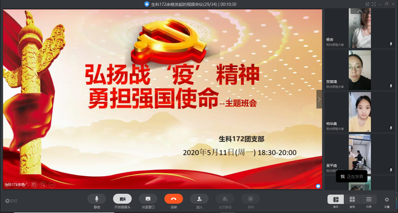 在十多位学生干部和班干代表参与线下直播观看活动的同时,其他各班同学也在寝室观看了杭师大开学第一课直播。此次本校采取的新型模式,在避免聚集、保障疫情防控工作开展的同时,也方便了同学们利用直播参与课堂,以一种全新的形式为初返校园的同学们振奋心情。在开学第一课直播课结束后,各班团支书组织了线上班会。特殊时期采取的特殊模式的班会课对同学们而言也是充满新鲜感,保证了同学们的参与度。此次活动的开展也引起了同学们的热议。