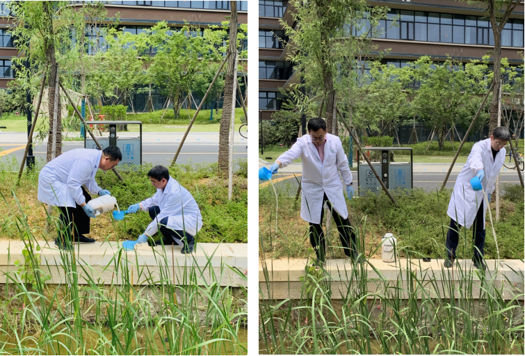一花一草皆生命,一枝一叶总关情。世界的花花草草皆有魅力,春暖花开之季更应“护绿”,执行院长张杭君和党委书记张立明用“EM菌”来改善学校河道水质,促进有益藻类正常生长,确保水体有益微生物正常生长,护住河道一片生机。