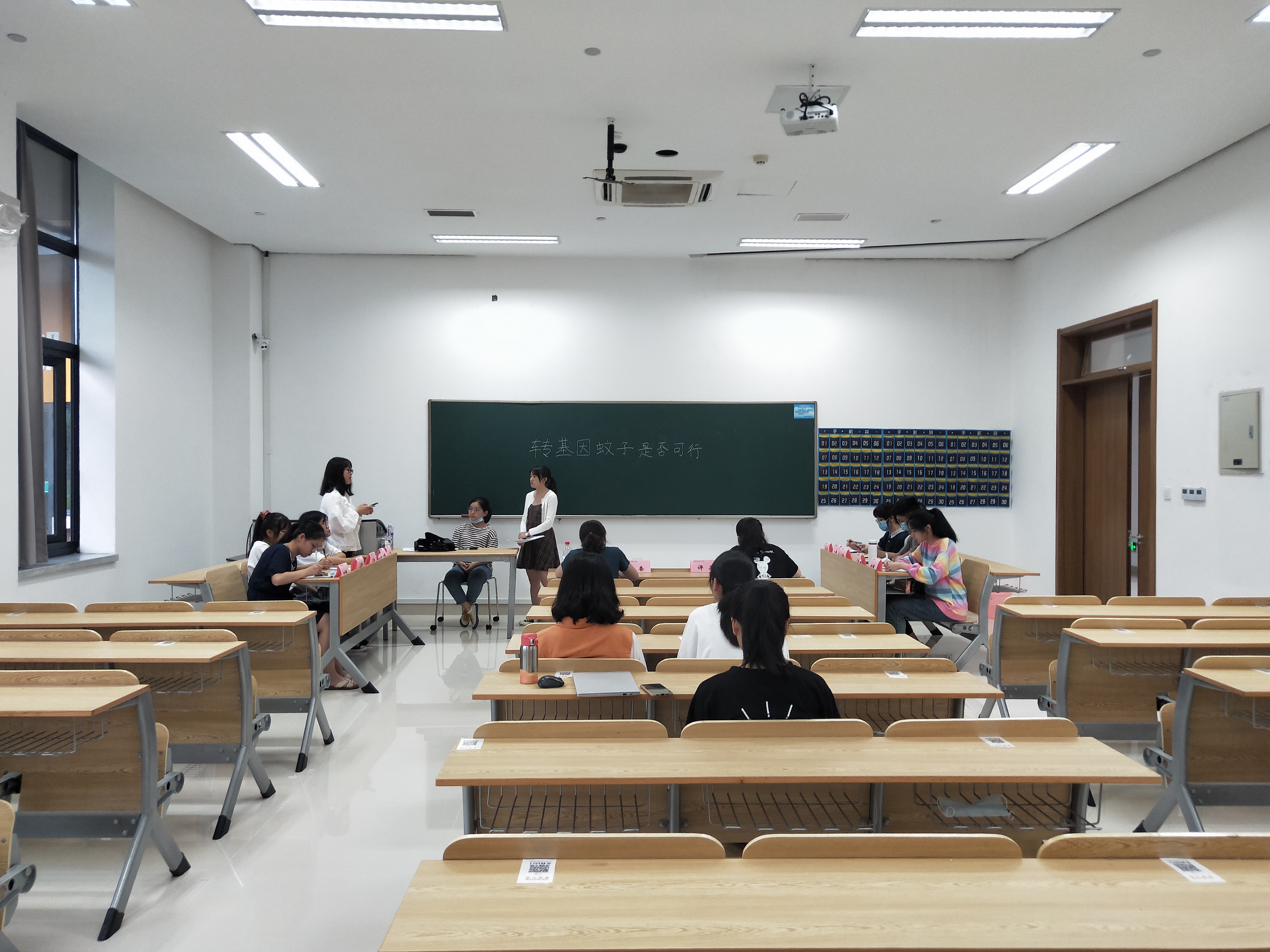 为了让同学们进一步了解转基因知识。2020“走近转基因”暑期社会实践小组于在慎园1-107举行了关于“转基因蚊子是否可行”的辩论赛,由张楚凡、张子源学姐担任评委,活动组长葛欣竺担任主持人,陈艳担任记分员。正方选手由钱晓晓担任一辩,朱佳棋担任二辩,王思彤担任三辩,何丹宁担任四辩;反方选手由周琦担任一辩,吴子祺担任二辩,蔡文杰担任三辩,郑雨辰担任四辩。