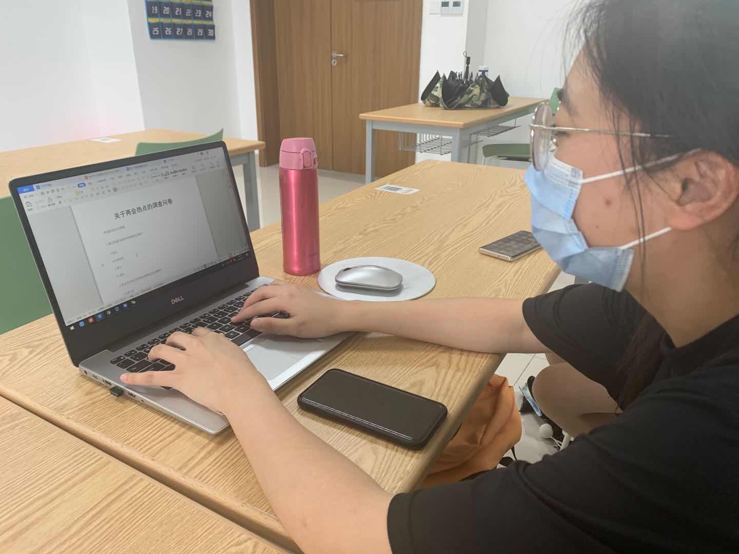 接着,小组便开始了活动的第一部分,制作海报和问卷调查。小组成员选取红色作为海报背景,旨在聚焦两会。海报上的文字不宜太多。由于问卷的发放对象是社区里的居民,因此问卷调查设置的问题不应该太难,最好都是选择题,以便社区中居民回答,问题设置应由简到难,先具体再抽象。要做到换位思考,站在参与者的角度去思考设置问题。