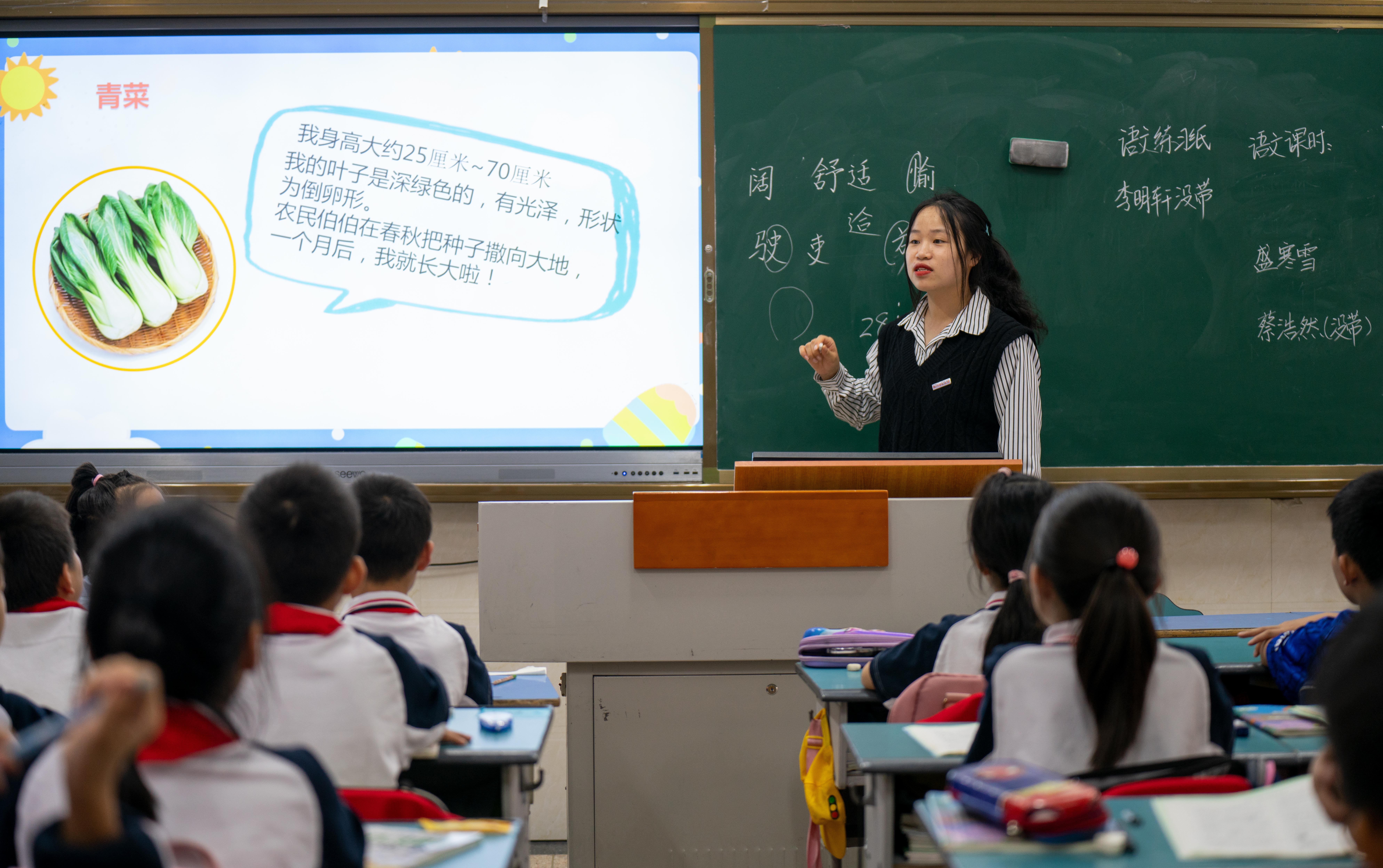 接着,陈一丹同学前往闲林和睦小学402班,向班级里的同学们讲解了农作物的相关知识,教会同学们辨认玉米,棉花等作物,介绍了农作物的历史起源,向同学们科普了符合其年龄的相关知识。同学们认真听讲,积极参与互动,课堂气氛十分活跃。最后,宣讲活动在同学们热烈的掌声中结束。