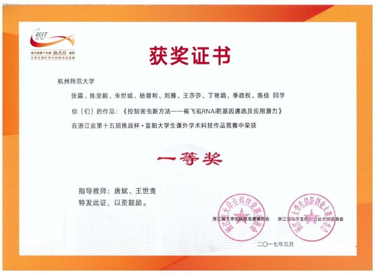2010年,唐老师开始接触本科生。当时,唐老师担任生物技术101班班主任,意外地在班上发现了做科研的“好苗子”。同年,他获得了国家自然科学基金的资助。于是,唐老师挑选出对科研感兴趣的学生组成生命科学竞赛队伍,指导队员进行异色瓢虫色斑变化的DNA分子遗传多样性研究。最终该研究在2011年斩获浙江省第三届大学生生命科学竞赛的一等奖,这同时也是我校参加该项赛事以来的“首金”。