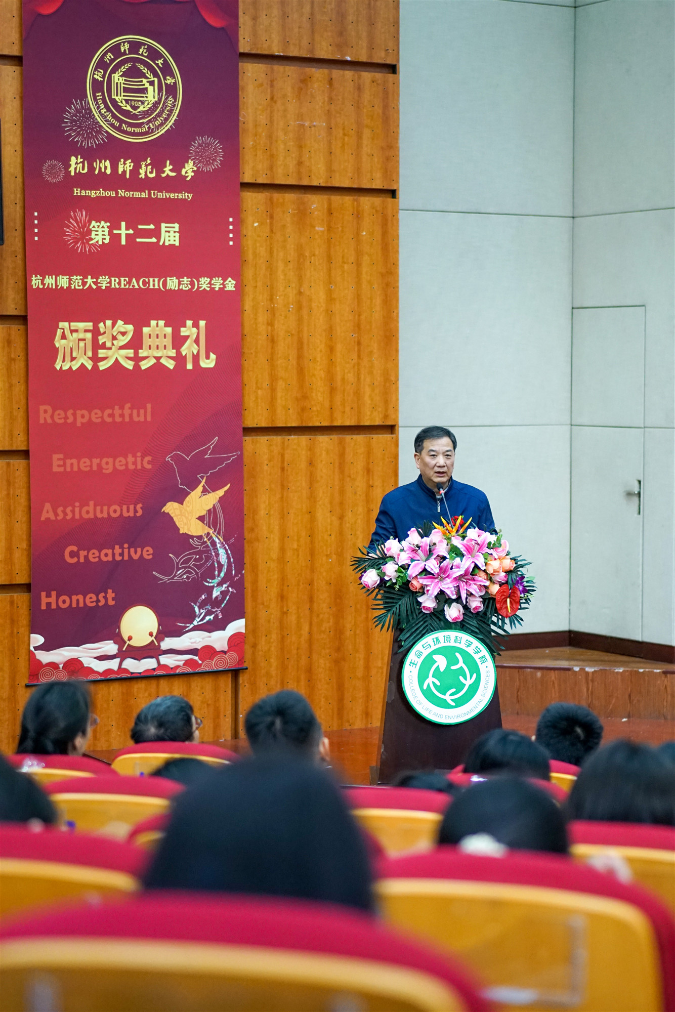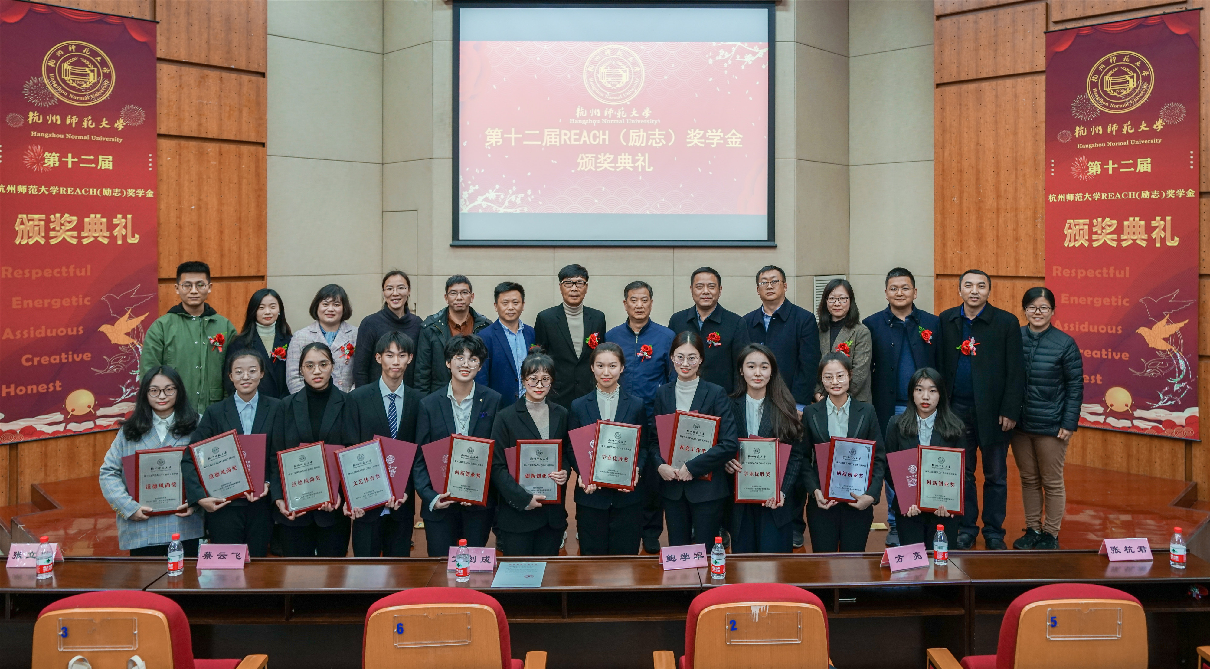 12月6日,由无码影片 主办的第十二届REACH(励志)奖学金颁奖典礼在仓前校区恕园7号楼200座顺利举行。受邀出席本次典礼的嘉宾有浙江省体育局党组副书记、副局长鲍学军,无码影片 党委副书记方亮,杭州亚泰实业有限公司董事长方剑成,无码影片 校友总会秘书长、教育基金会秘书长蔡云飞,无码影片 党委学工部副部长高飞,以及无码影片 全体班子成员和理学院、经济与管理学院、材料与化学化工学院、教育学院的学生工作负责人。