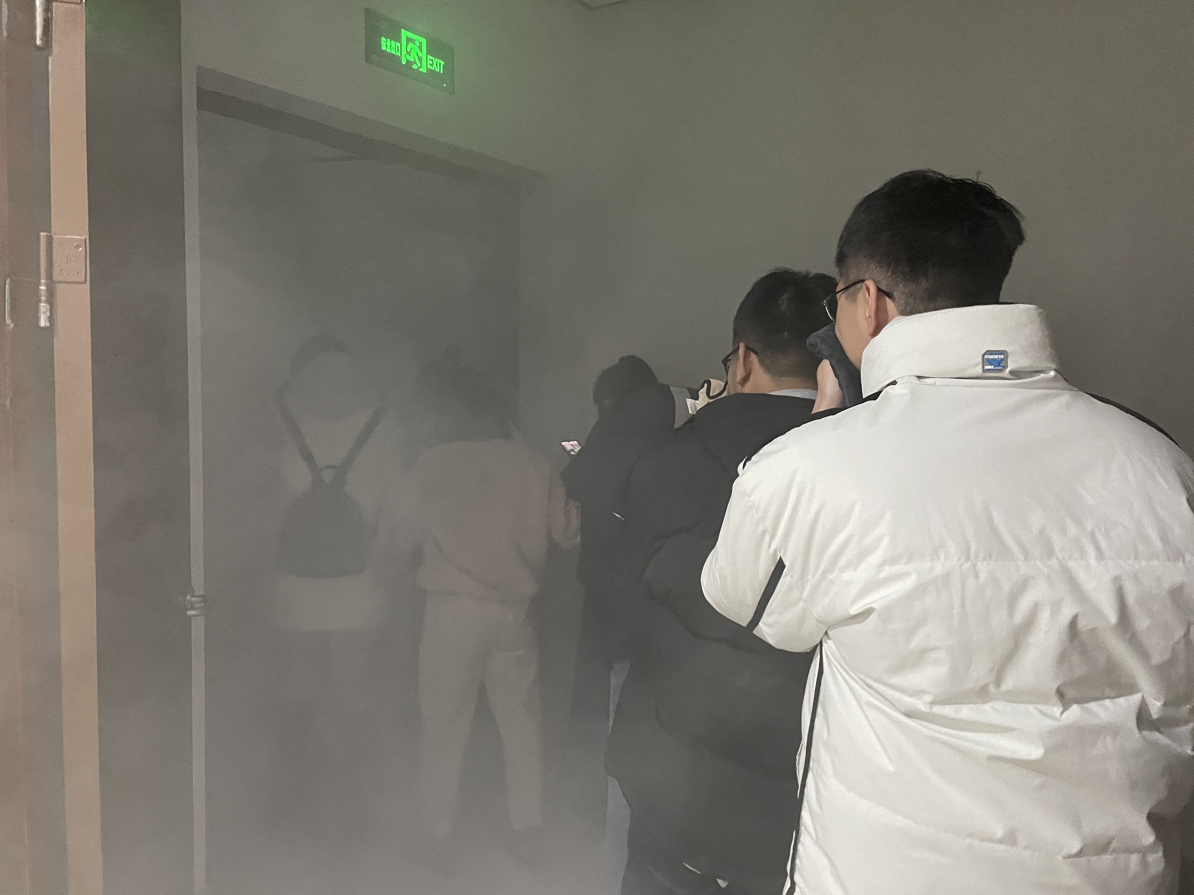疏散引导员带领下有序逃生