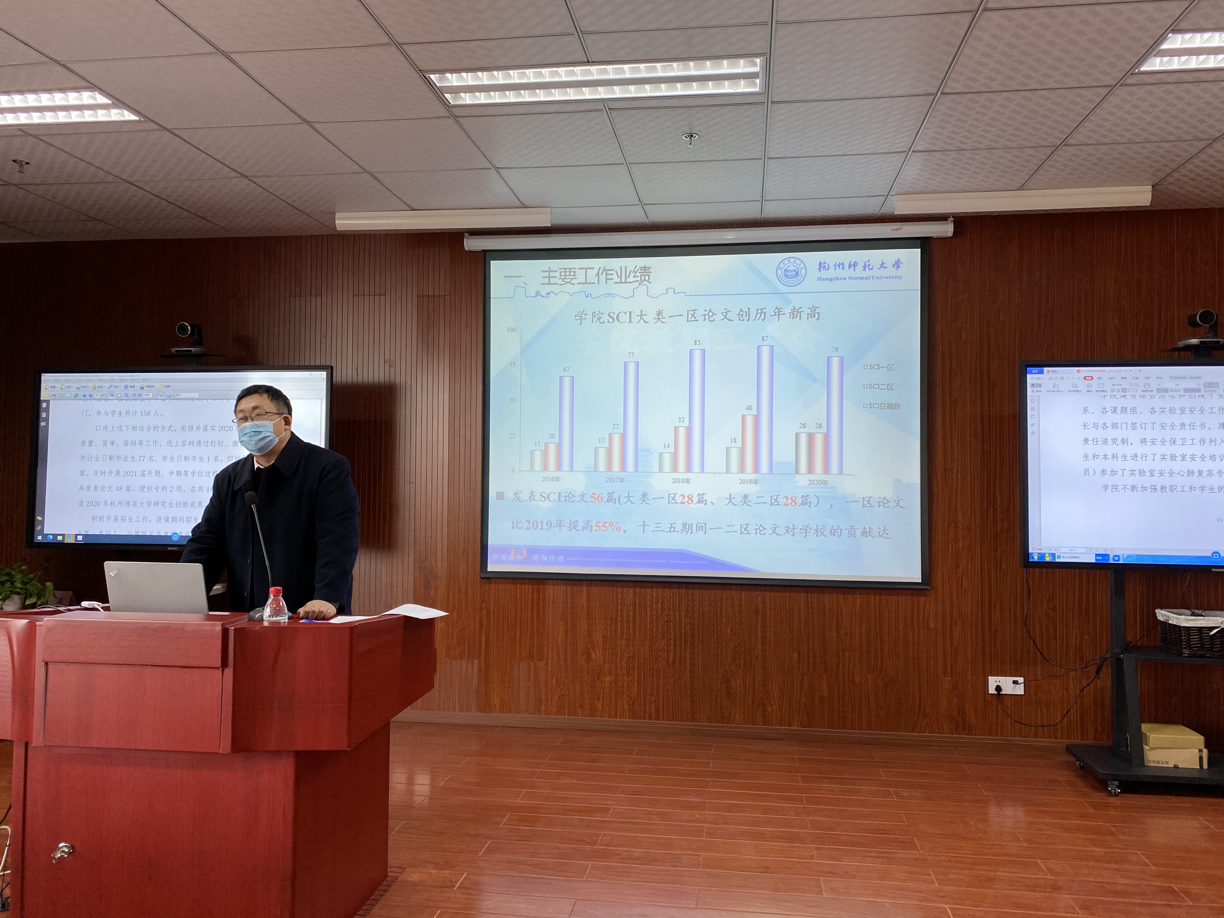 2020年因为疫情变得不平凡,对学院来说也是不平凡的一年,在抗疫防疫中寻求发展。申博、师范专业认证、学科评估、“十四五”规划成为了学院今年的关键词。1月18日,我院召开全院教职工大会,执行院长张杭君、党委书记张立明等领导班子成员以及全体教职工出席会议,张立明主持会议。
