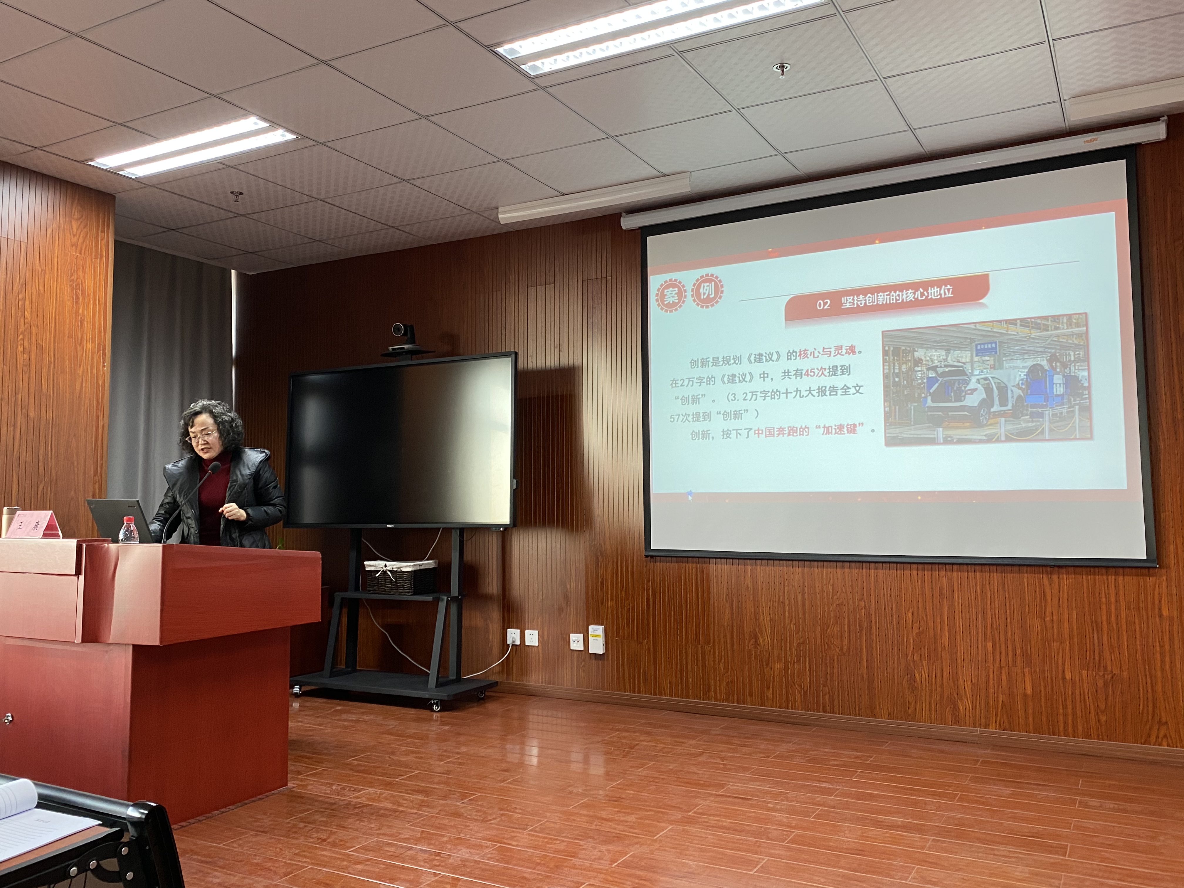 最后,我们还请到了马克思主义学院的王康教授,为全院上了一堂题为《奋进新时代 开启新征程——学习党的十九届五中全会精神》的政治学习课。亮成绩——判大势——定战略——谋重点,王教授从四个部分深入浅出地告诉与会教师党的十九届五中全会的重要性和历史性。