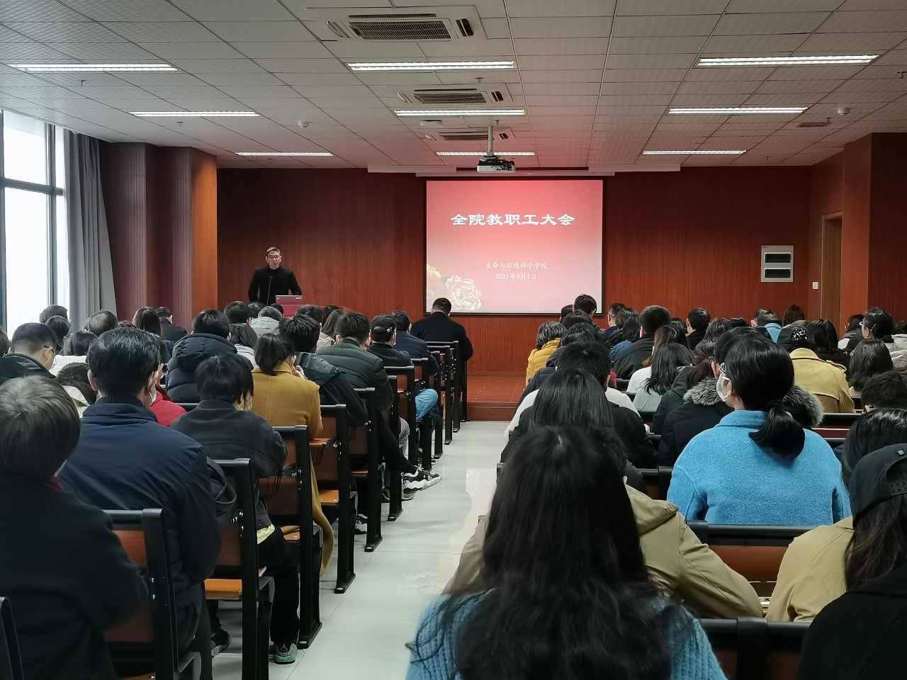 以学校第三次党代会精神为指导,我院迎来了新的学期。3月1日,学院召开全体教职工大会,学院领导班子及全体教职工参加了会议。学院党委书记张立明主持会议。会议共三项议程。