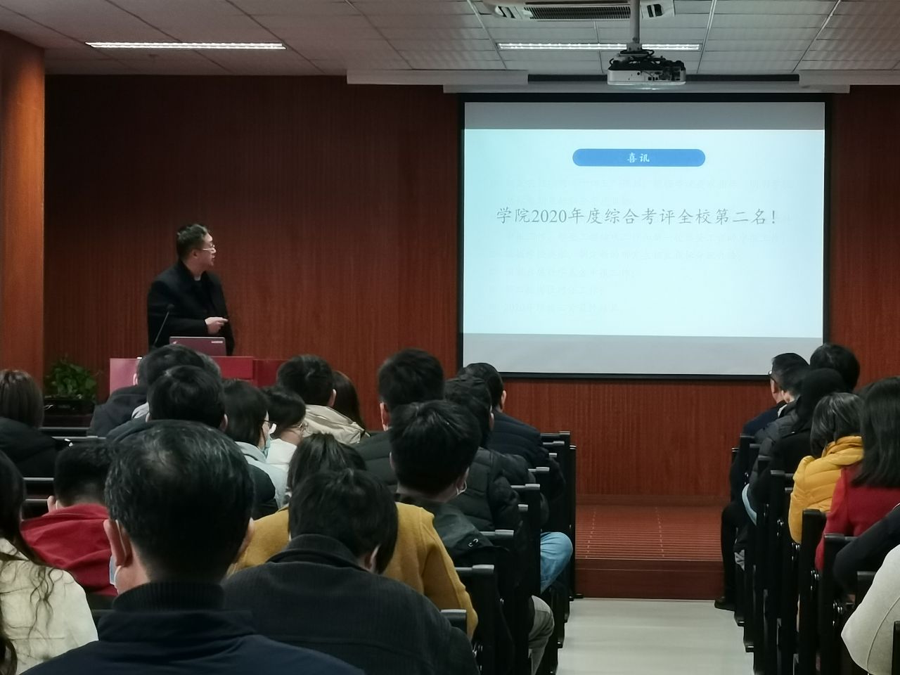 首先执行院长张杭君传达了一条喜讯,我院2020年度综合考评全校第二名,这和在座各位教职工的努力是分不开的。紧接着布置了新学期学院的重点工作和常规工作,鼓励大家以饱满的热情投入到教学和科研中。