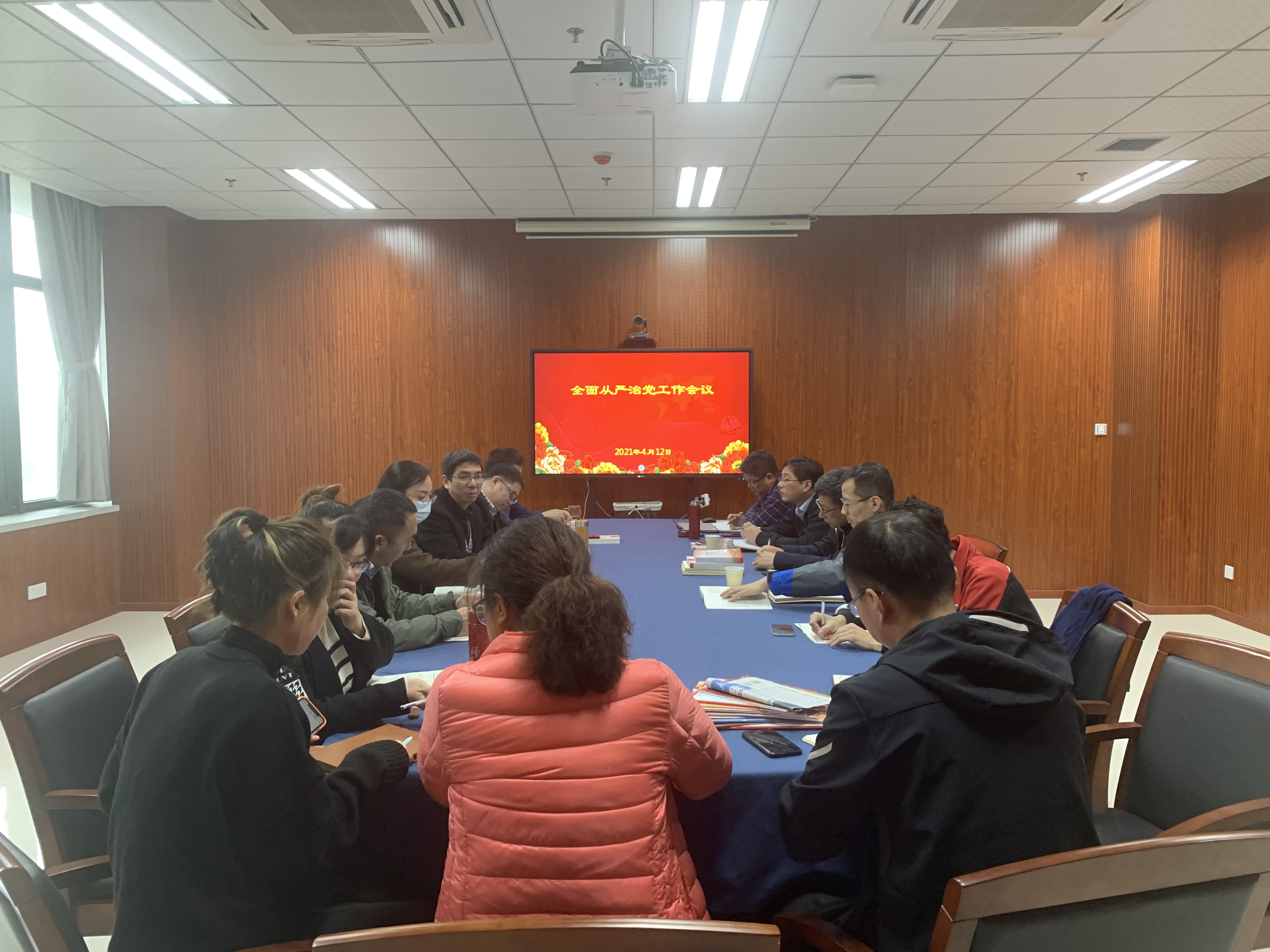 4月12日,无码影片 召开全面从严治党工作会议,深入学习贯彻2021年全省教育系统全面从严治党工作视频会议精神,学院领导班子和党支部书记参加会议,会议由党委书记张立明主持。