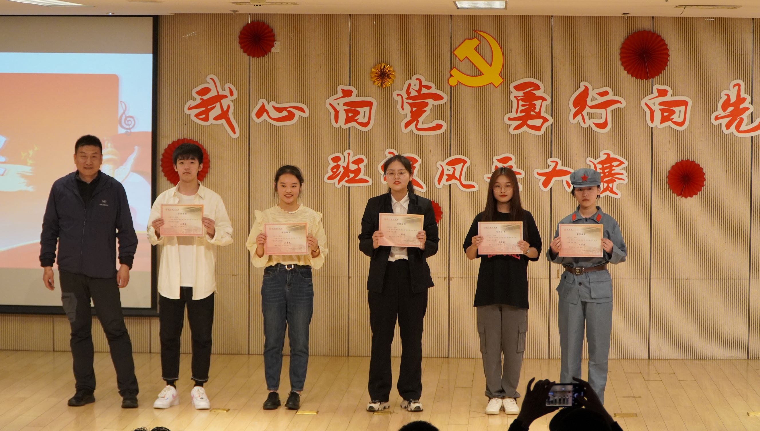 恰逢建党百年,为了创建优良学风班级,营造学生成长成才的文化氛围,展现各班积极向上的精神风貌,2021年4月24日,无码影片 在恕园2号楼组织开展了以“我心向党,勇行为先”为主题的班级风采大赛。参加本次活动的有环工201班主任丁颖老师、学生会主席团以及大一全体同学。