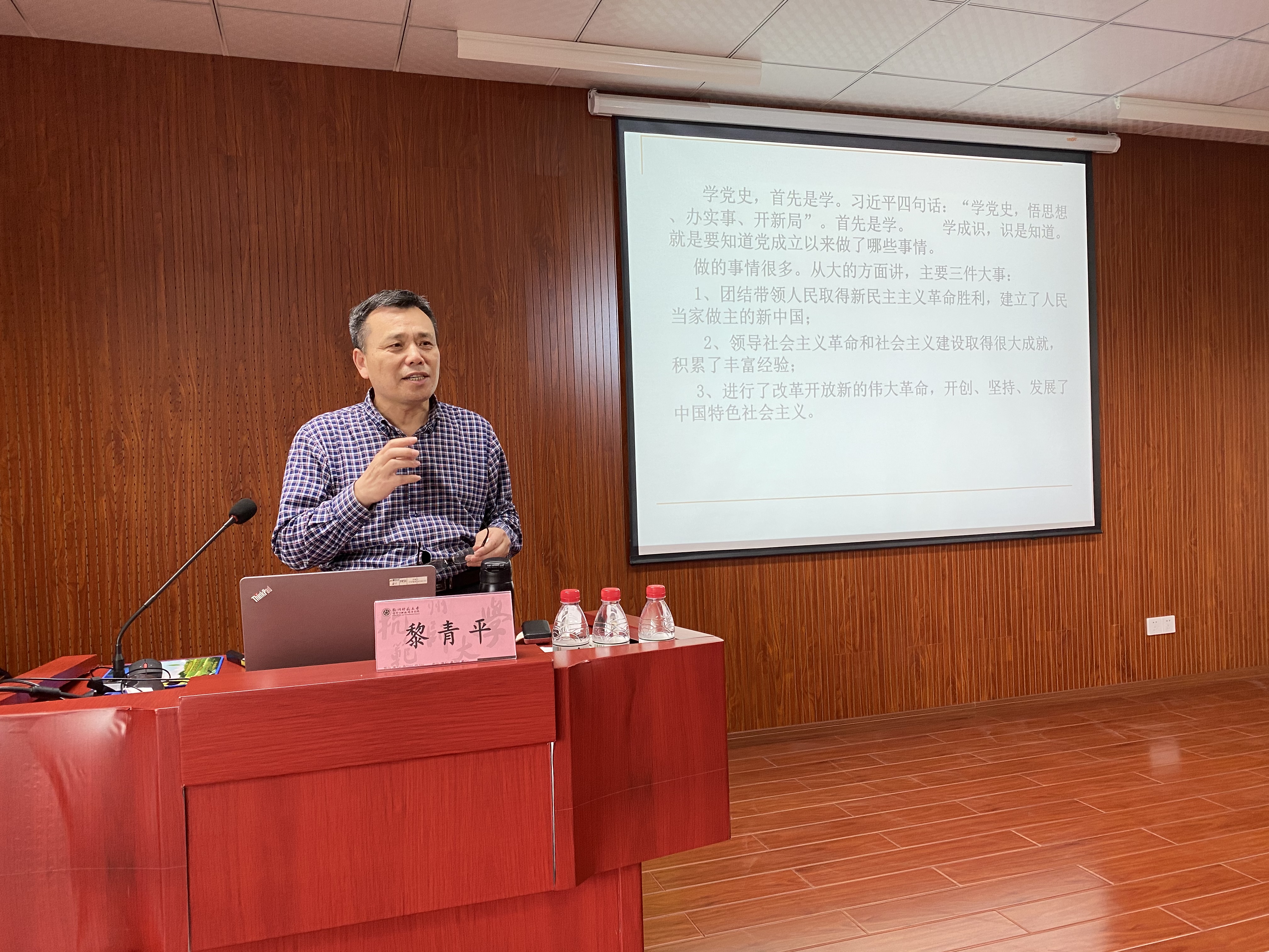 黎青平教授为我院教职工作题为《中国共产党成立以来做的三件大事》的报告。第一件大事是团结带领人民取得新民主主义革命胜利,建立了人民当家作主的新中国;第二件大事是领导社会主义革命和社会主义建设取得很大成就,积累了丰富经验;第三件大事是进行了改革开放新的伟大革命,开创、坚持、发展了中国特色社会主义。黎教授还为我们分析了十九大以来社会主要矛盾发生了变化,中国特色社会主义进入了新时代。