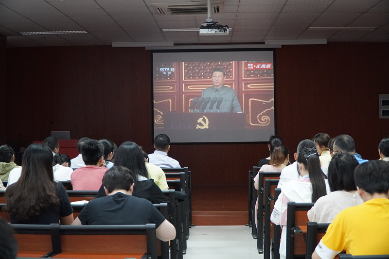 为了深入贯彻落实习近平新时代中国特色社会主义思想,庆祝中国共产党成立100周年,更好地传承红色基因,赓续中国共产党的红色光荣传统,我院于2021年7月1日星期四上午8:00,在慎园15号楼309会议室学院全体领导班子、党支部书记及师生代表100余人集中观看庆祝中国共产党成立100周年大会直播,共同见证这一举世瞩目的光辉时刻。
